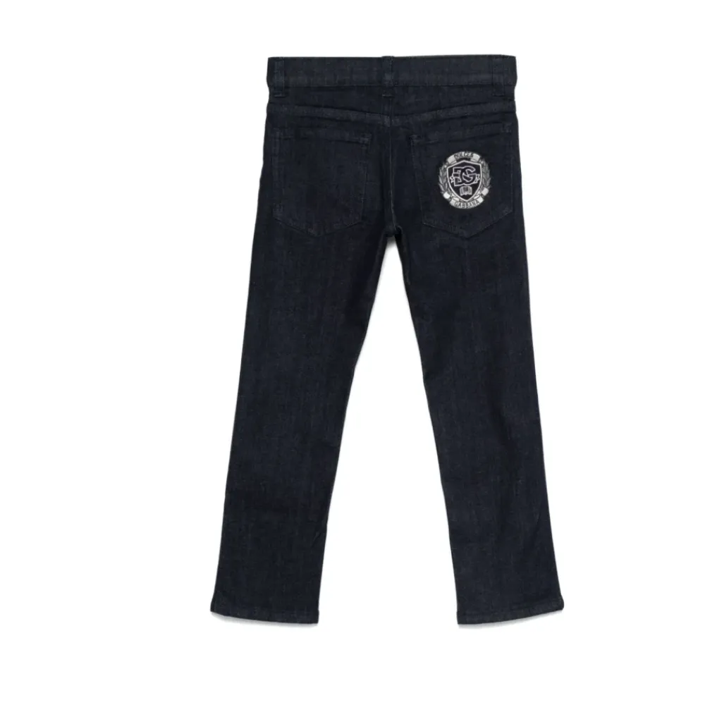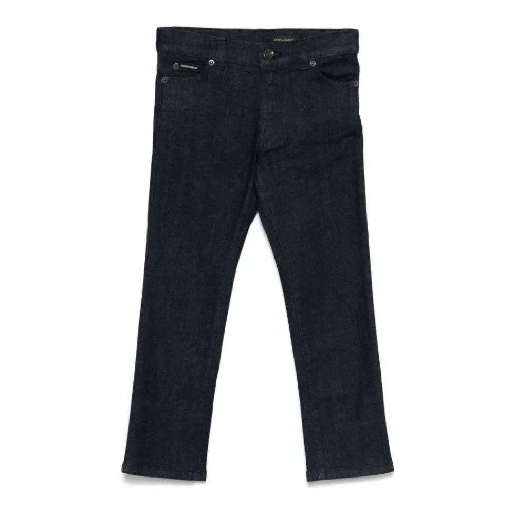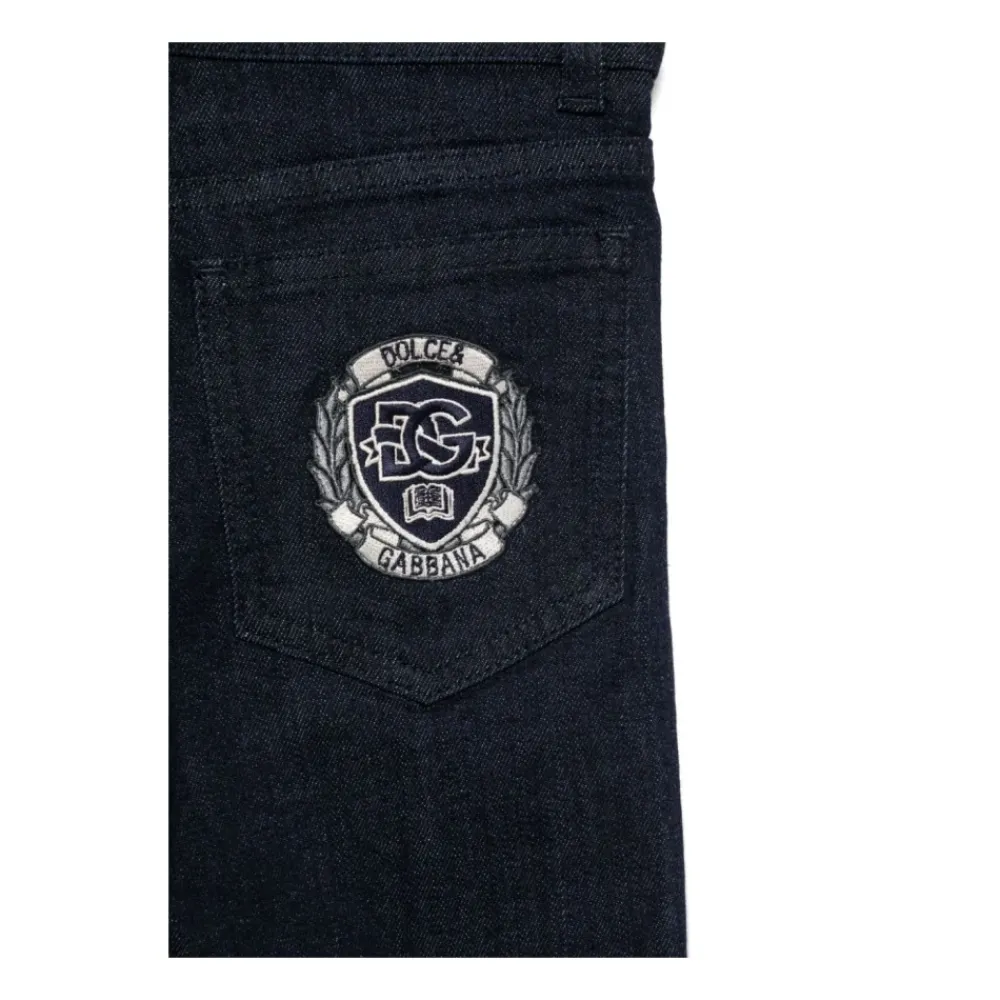 Dolce & Gabbana Jeans mit einem gestickten Logo auf der Rückseite, klassischem Five-Pocket-Stil und einem geraden Saum für den Alltag. Hauptmerkmale: Blau | Variante Abbinata | Baumwolle | Five-Pocket-Design | Knopf- und Reißverschluss vorne | Gürtelschlaufen | Gesticktes Logo auf der Rückseite | Unifarbenes Design | Gerader Saum | Materialzusammensetzung und Pflege: 100% Baumwolle