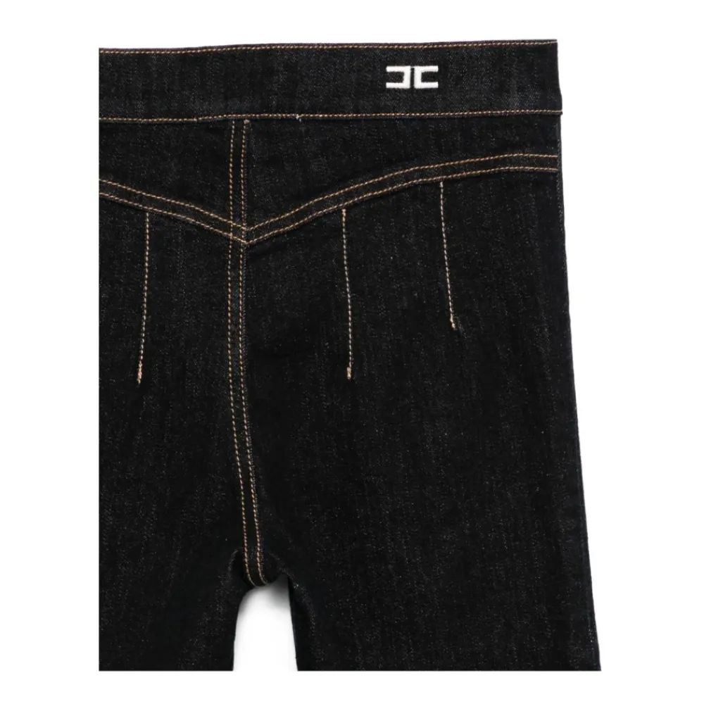 Elisabetta Franchi Jeans mit markanten goldfarbenen Knöpfen und Kontrastnähten, gefertigt für einen eleganten Alltags-Denim-Look. Hauptmerkmale: Blau | Goldfarbene Knopfverzierungen | Kontrastnähte | Dunkelblaue Waschung