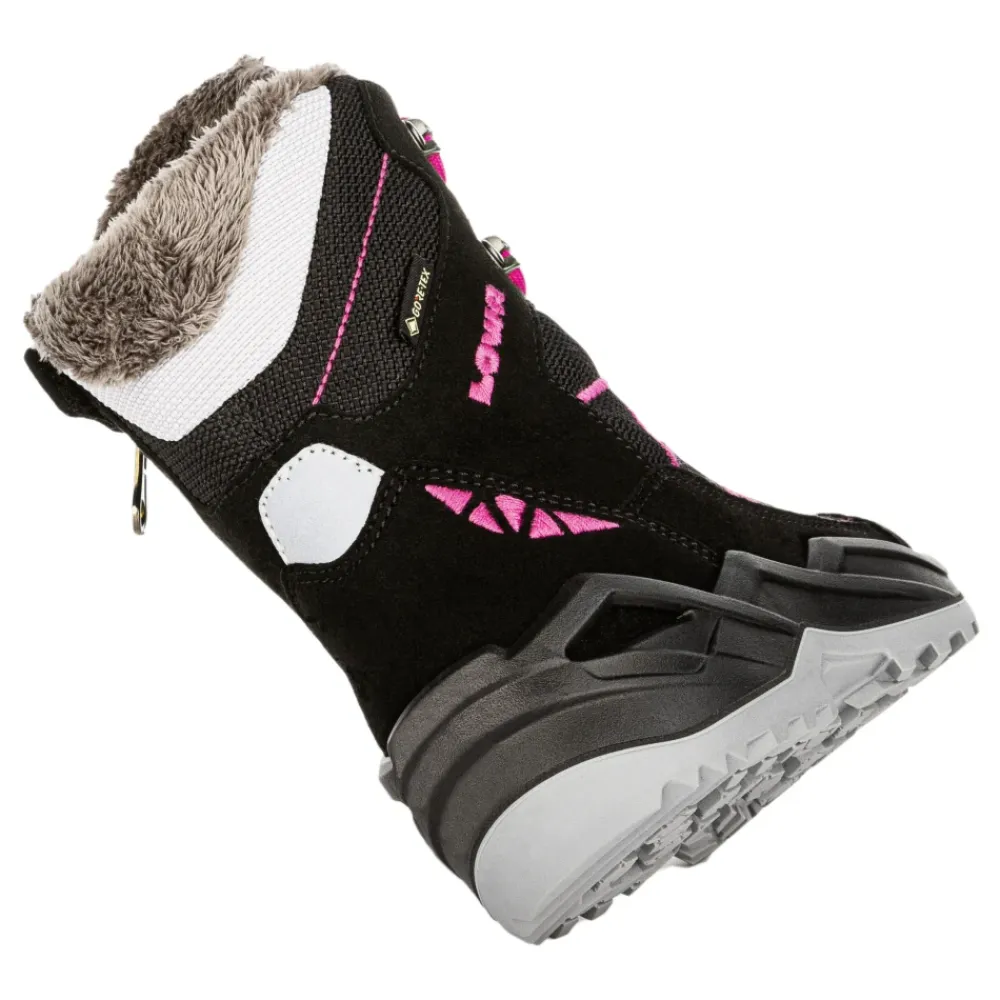 Der Lowa Jonas GTX ist ein wintertauglicher Stiefel, der GORE-TEX Wetterschutz mit einem einfachen seitlichen Reißverschluss für schnelles An- und Ausziehen kombiniert. Er wurde für aktive Tage entwickelt und bietet zuverlässigen Halt und Dämpfung bei kalten, nassen Bedingungen. Hauptmerkmale: Multicolor | Schwarz | Fuchsia | Textil, Synthetik | Wasserdichte GORE-TEX Membran | Warmes Futter | Griffige PU-Laufsohle | Atmungsaktive Membran | Seitlicher Reißverschluss für einfachen Einstieg | PU-Zwischensohle für Dämpfung | Lowa Kids Winter Trac Laufsohle für verbesserten Grip | Runde Schuhspitze | Hoher Schaft | Profiliertes Winterprofil | Sportliche, moderne Silhouette | Maße & Passform: Gewicht: 520 g (Paar, Größe 31) | Normale Passform (normale Leistenbreite) | Zusammensetzung & Pflege: Obermaterial: 60% Textil, 40% Synthetik | Zwischensohle: 100% Polyurethan | Innensohle: 65% Polyethylen, 35% Fleece | Membran: GORE-TEX
