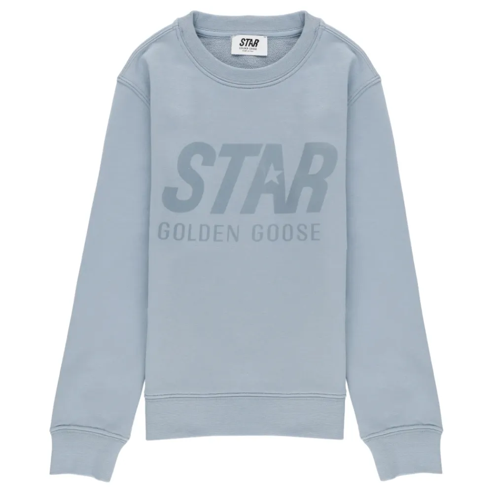 Hellblaues Golden Goose Baumwoll-Sweatshirt für Jungen mit Rundhalsausschnitt, langen Ärmeln, Logo-Print vorne und elastischen Rippbündchen.