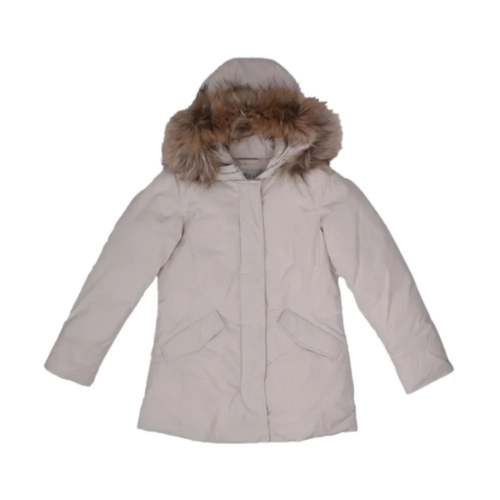 Bleiben Sie warm und stilvoll mit dieser junior unisex Woolrich Jacke mit Kapuze mit Kunstpelzbesatz, vorderer Reißverschluss und Knopfverschluss, seitliche Taschen mit Knopfverschluss, Innentasche. Zusammensetzung: Außenmaterial – 60% Baumwolle 40% Polyamid, Futter – 100% Polyester, Füllung – 70% Entendaunen 30% Federn. Lieferantencode: CFWKOU0479FRUT31288743.