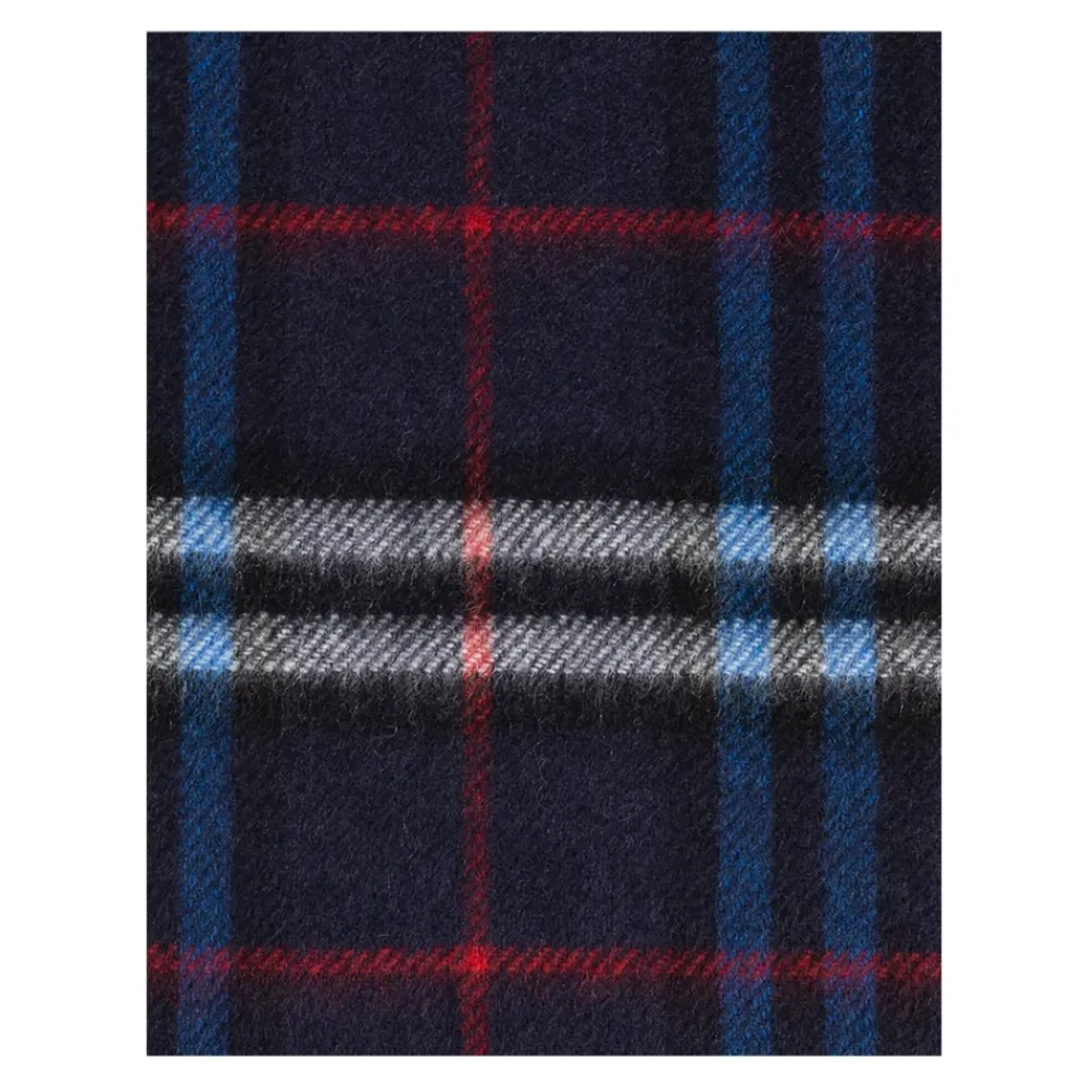DAS KARIERTE MUSTERSCHAL von Burberry Kids verkörpert die zeitlose Eleganz des britischen Stils, gefertigt in einem außergewöhnlich weichen und luxuriösen Gewebe. Sorgfältig aus ausgewähltem Kaschmir gewebt, besticht es mit einem KLASSISCHEN SCHOTTISCHEN MOTIV – regelmäßige, raffinierte Linien in Nuancen von Marineblau, Rot, Blau und Weiß verschmelzen harmonisch miteinander und betonen die Raffinesse des Designs. Die Zartheit der Komposition wird durch MEHRFARBIGE, AUFFÄLLIGE FRANSEN entlang einer Kante sowie perfekt verarbeitete Kanten ergänzt, die das herausragende Handwerk bezeugen. Das Fehlen eines sichtbaren Logos ermöglicht eine vollständige Wertschätzung der raffinierten Einfachheit und Authentizität des Produkts, das die feinsten Traditionen der Kindermode von Burberry widerspiegelt. WARUM DIESES PRODUKT WÄHLEN? * Edler Kaschmir sorgt für außergewöhnliche Weichheit und Tragekomfort. * Das ewig moderne, klassische Karomuster betont raffinierten Geschmack. * Herausragende Präzision des Handwerks garantiert höchste Maßstäbe an Haltbarkeit und Ästhetik. * Details wie lange, bunte Fransen verleihen eine einzigartige Note. * Eine Kreation des renommierten Burberry, ein wahres Synonym für Luxus und britisches Handwerk. Breite: 20 cm Länge: 127 cm