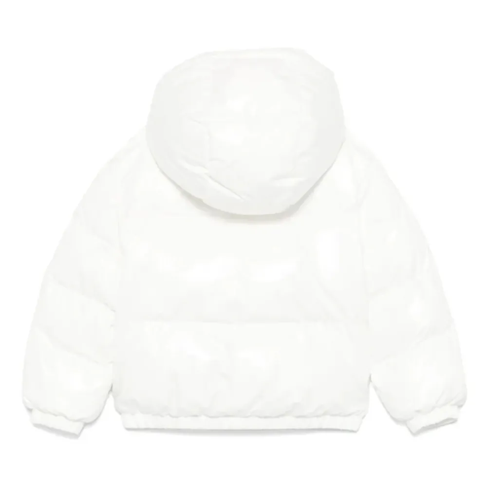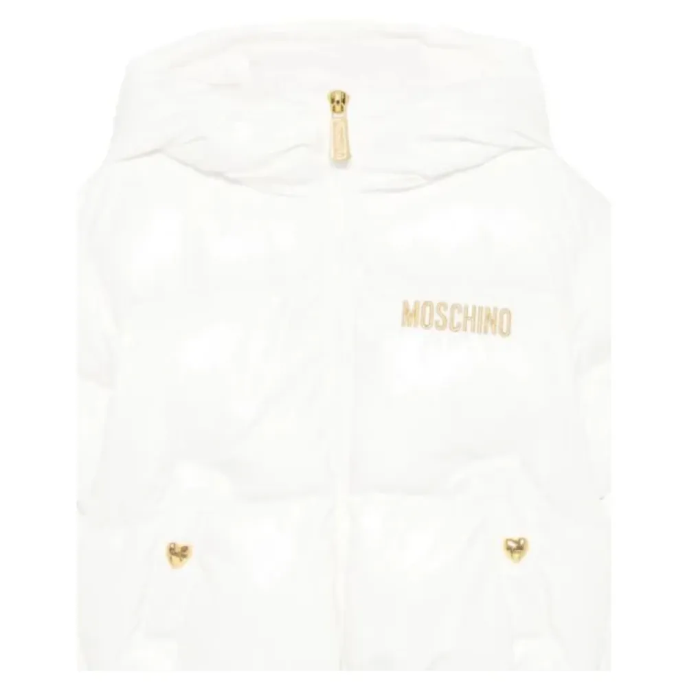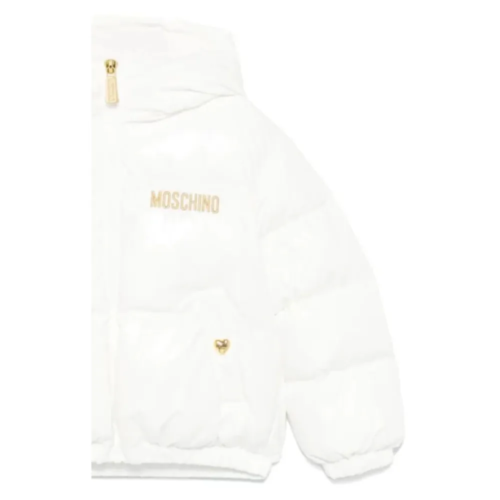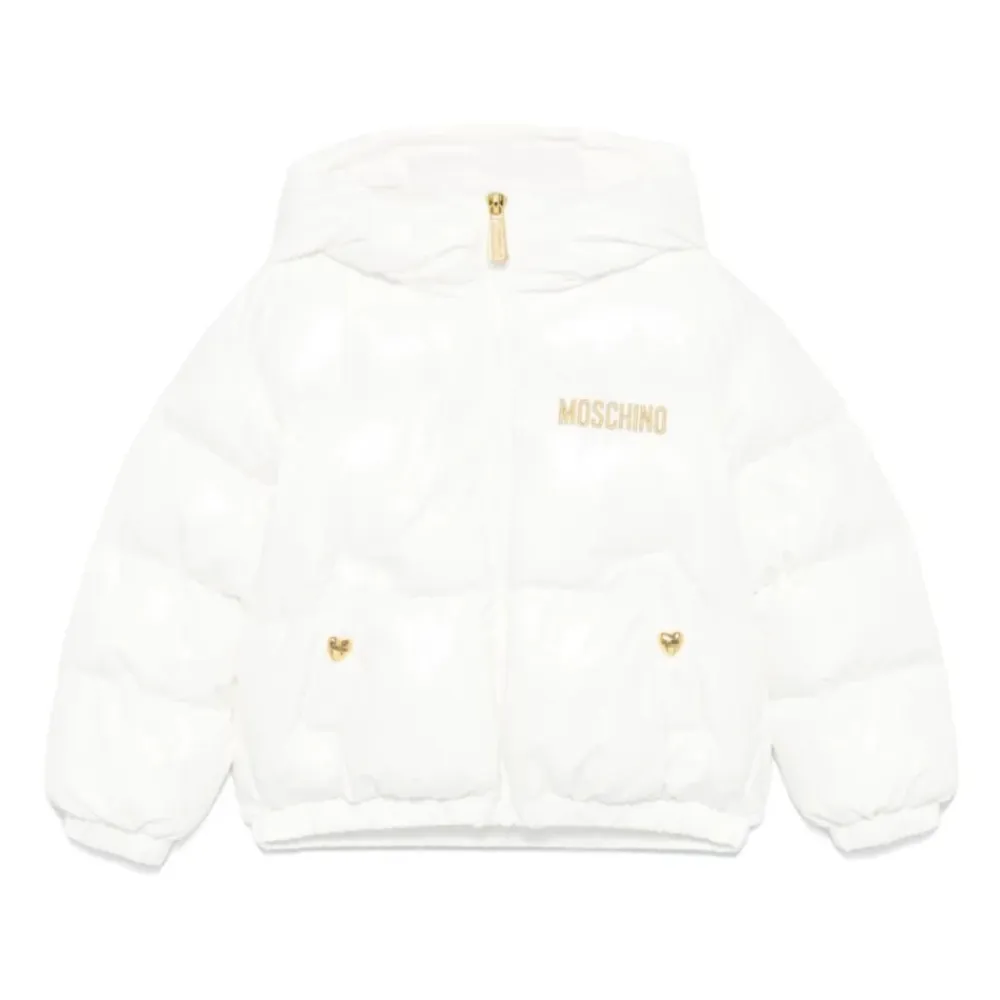 Bleiben Sie diesen Winter mit dieser weißen Bomberjacke für Mädchen von Moschino stilvoll und warm.