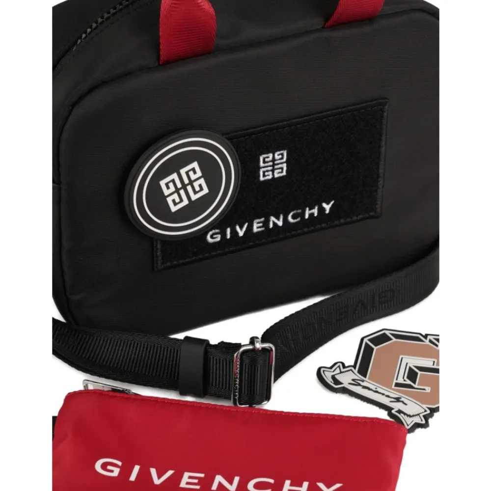 Heben Sie den Stil Ihres kleinen Mädchens mit dieser Givenchy Kids Tasche hervor. Mit dem ikonischen Logo auf der Vorderseite verfügt diese Tasche über einen verstellbaren Schultergurt, zwei obere Griffe und ein Fach mit Reißverschluss. Hergestellt aus 100% Nylon in China. Maße: Höhe 15 cm, Breite 21 cm, Tiefe 8 cm.