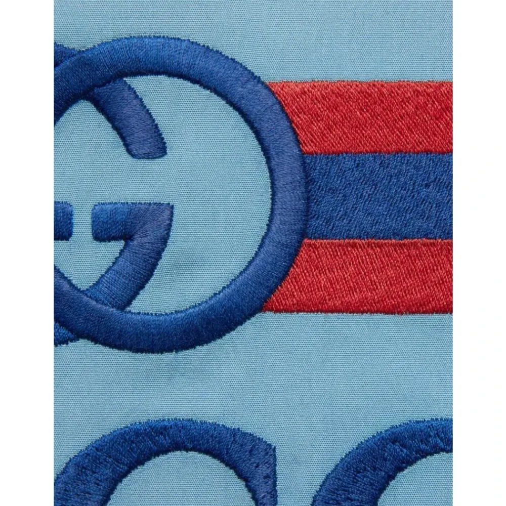 Werten Sie die Garderobe Ihres Kleinen mit diesem stilvollen Gucci Interlocking G Web bestickten Patch-Hemd auf. Das Hemd ist mit einem klischen Spitzkragen und langen Ärmeln gestaltet und verfügt über einen Knopfverschluss für einfaches Anziehen. Hergestellt in Italien aus einer Mischung aus 96% Baumwolle und 4% Elastan bietet es sowohl Komfort als auch Langlebigkeit. Perfekt für modebewusste Jungen, ist dieses Gucci Hemd ein Muss für ihre mlung.