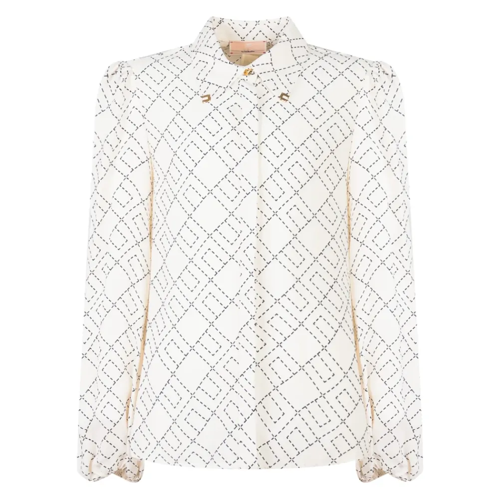 Das Elisabetta Franchi La Mia Bambina Shirt kombiniert einen klassischen Kragen mit Metallic-Details und einem durchgehenden geometrischen Logo-Muster für ein raffiniertes Alltags-Top. Gefertigt aus weißer Viskose bietet es einen geschmeidigen Fall und eine strukturierte Silhouette. Hauptmerkmale: Weiß | Viskose | Verdeckter Knopfverschluss | Klassischer Kragen mit Metallic-Details | Durchgehendes geometrisches Logo-Muster | Lange Ärmel | Abgerundeter Saum | Maße & Passform: Reguläre Passform
