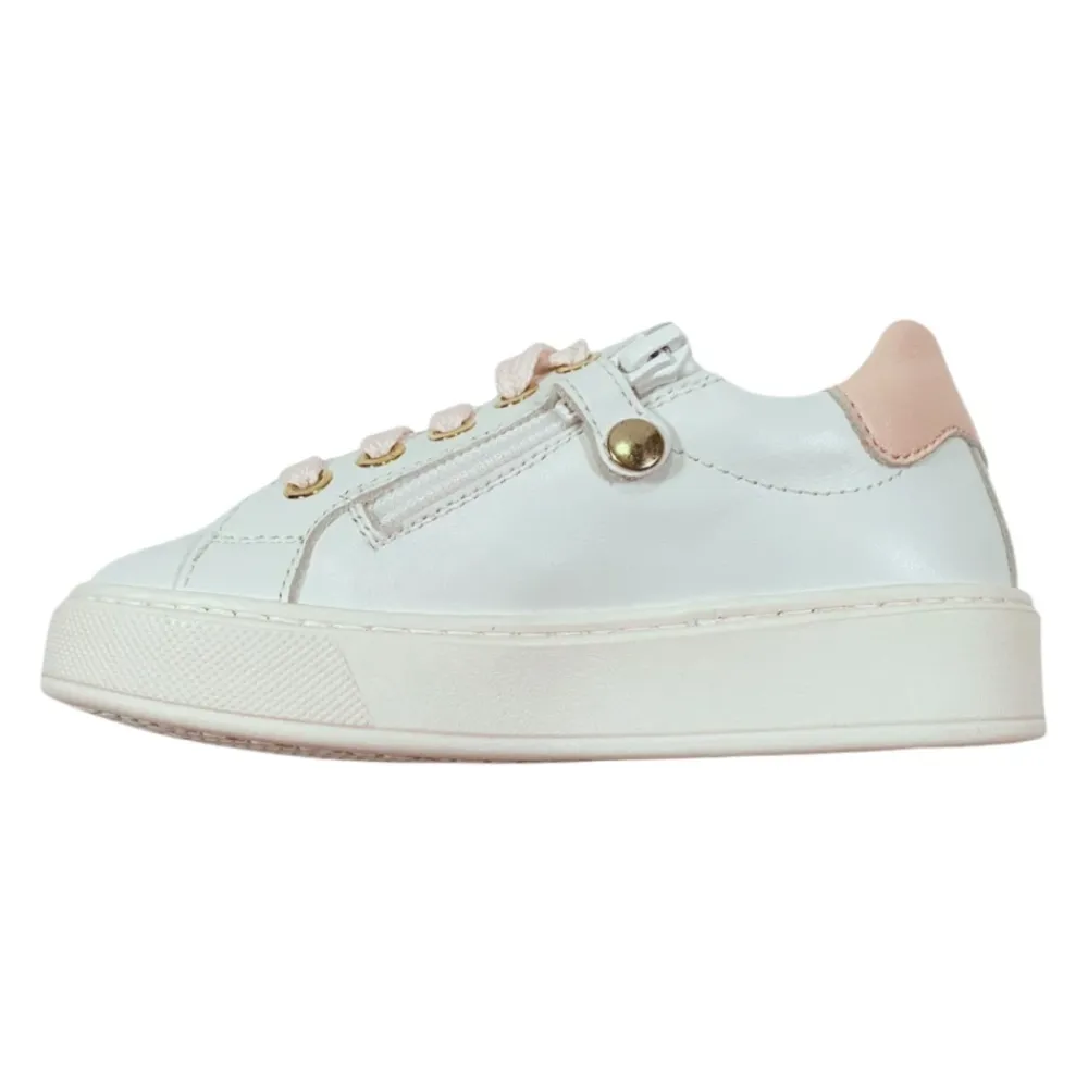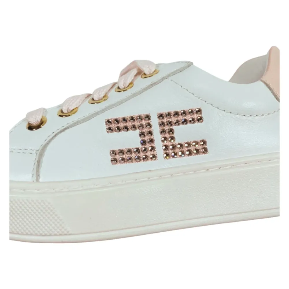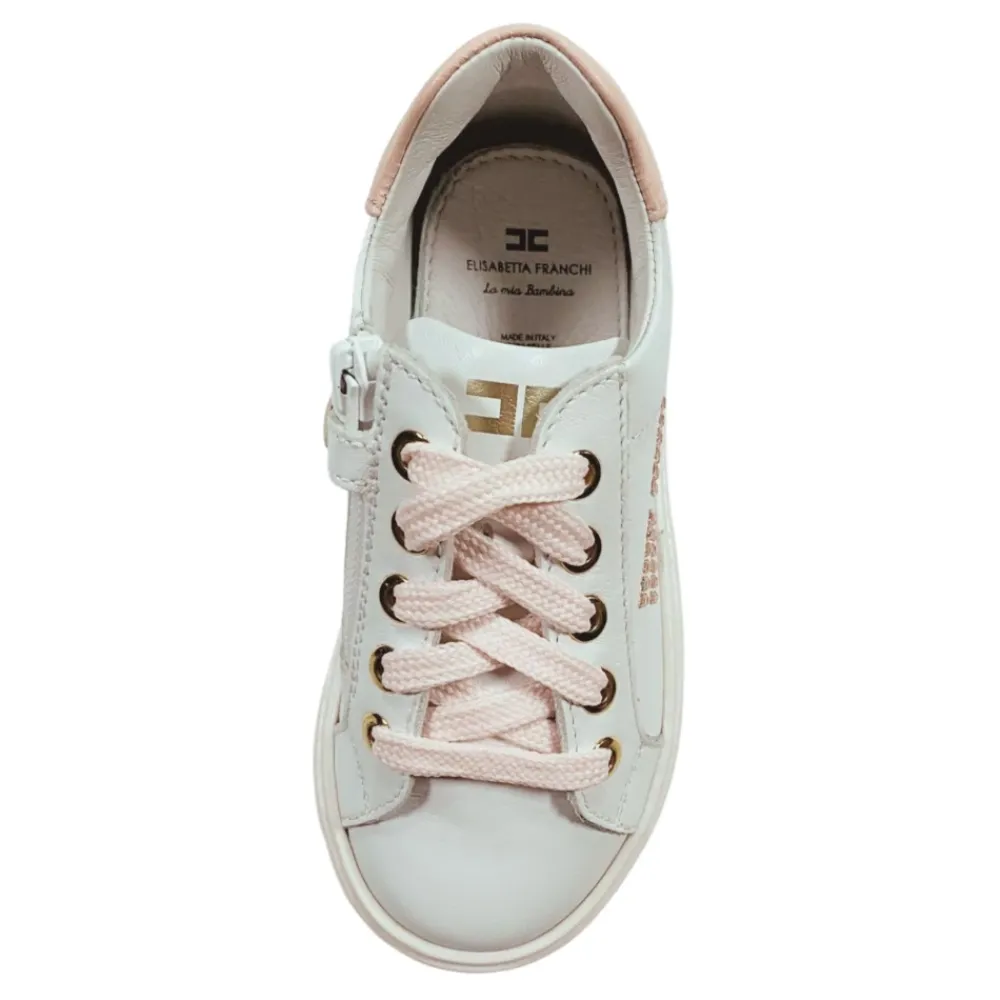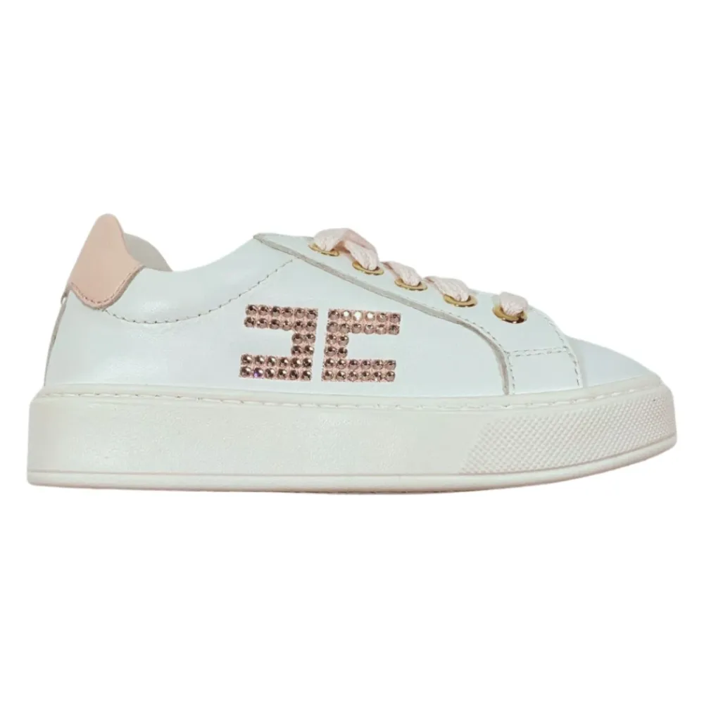 Die Elisabetta Franchi La Mia Bambina Sneakers vereinen edle Details mit müheloser Alltagstauglichkeit. Diese Leder-Sneakers zeichnen sich durch ihr Strass-Logo und kontrastierende rosa Akzente aus und sind mit einem seitlichen Reißverschluss für einfaches An- und Ausziehen konzipiert. Hauptmerkmale: Weiß | Rosa | Leder | Seitlicher Reißverschluss | Kontrastierende rosa Schnürsenkel | Gummisohle | Strass-Logo | Kontrastierende rosa Details | Runde Spitze | Zusammensetzung & Pflege: Obermaterial: Kalbsleder 100% | Futter: Kalbsleder 100% | Sohle: Gummi 100%