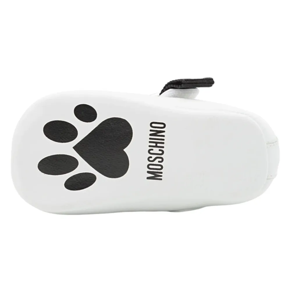 Moschino Laminierte Nappa Ballerinas aktualisieren eine klassische Ballerina-Form mit einer Ripsbandschleife, Logo und einem Metallherz für ein charakteristisches Finish. Designer-Code: MNT80388MK440 (80388/PIABIANCO). Hauptmerkmale: Weiß | Leder | Klettverschluss | Ripsbandschleife | Logo-Detail | Metallherz an der Seite | Gedrucktes Logo auf der Sohle | Hergestellt in Italien | Abmessungen & Passform: Europäische Größen | Materialzusammensetzung & Pflege: Obermaterial: 100% Ziegenleder | Futter: Leder | Sohle: Ledersohle mit Aufdruck