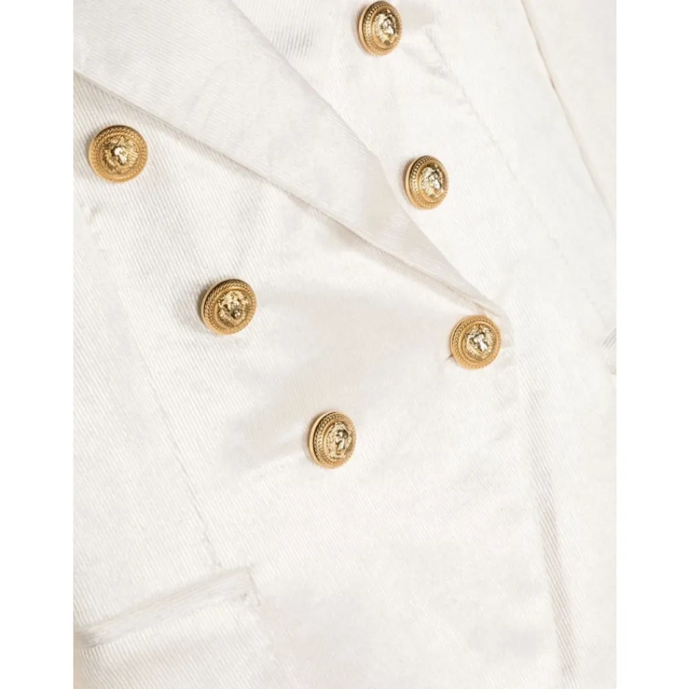 Die leichte Jacke von Balmain bietet eine schicke und vielseitige Schicht für jede Garderobe, perfekt für die Übergangszeit. Wichtige Merkmale: Elfenbein | Beige | Baumwollmischung | Leicht | Frontreißverschluss | Klassischer Kragen | Lange Ärmel | Maße und Passform: Normale Passform | Zusammensetzung und Pflege: 80% Baumwolle, 20% Polyester | Maschinenwäsche kalt, bei niedriger Temperatur trocknen