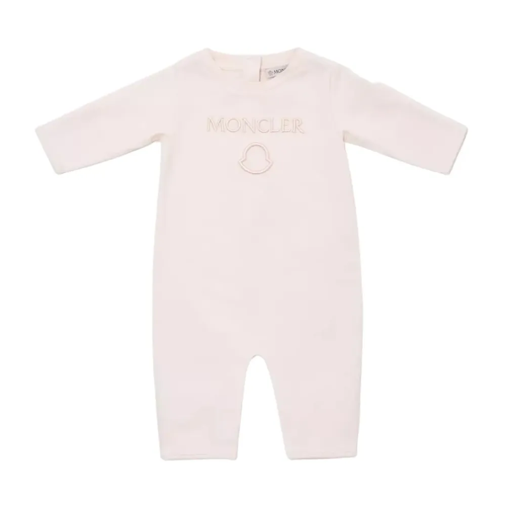 Moncler Kids rosa Body aus hochwertiger Baumwolle mit langen Ärmeln, Rundhalsausschnitt, besticktem Moncler-Logo vorne und Druckknopfverschluss hinten. Stoff: 100% Baumwolle.