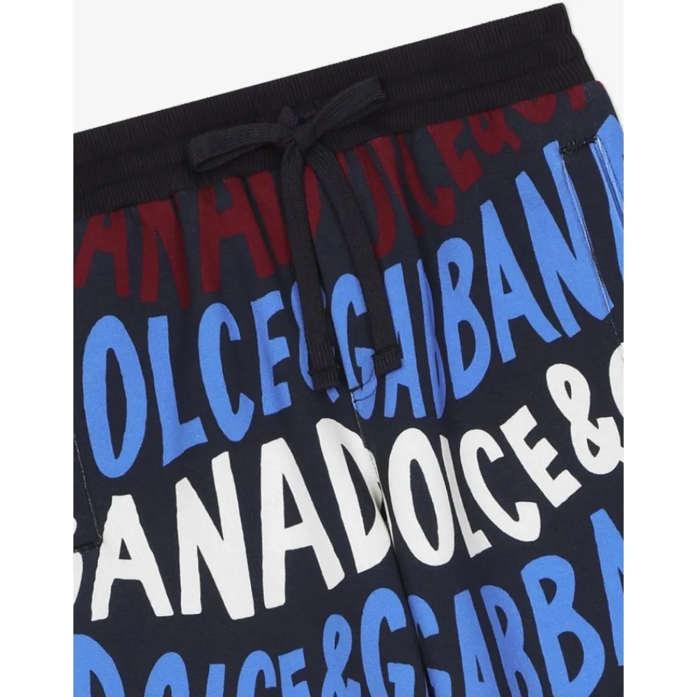 Heben Sie den Stil Ihres kleinen Mannes mit diesen Dolce & Gabbana Jogginghosen hervor. Hergestellt aus weicher, gebürsteter Baumwolle, verfügen sie über einen elastischen Bund mit Kordelzug, Seitentaschen, Gesäßtasche und gerippte Knöchel. Verziert mit einem all-over Dolce & Gabbana Logo-Print in Weiß, Burgunder und Hellblau. Hergestellt in Italien aus 100% Baumwolle.