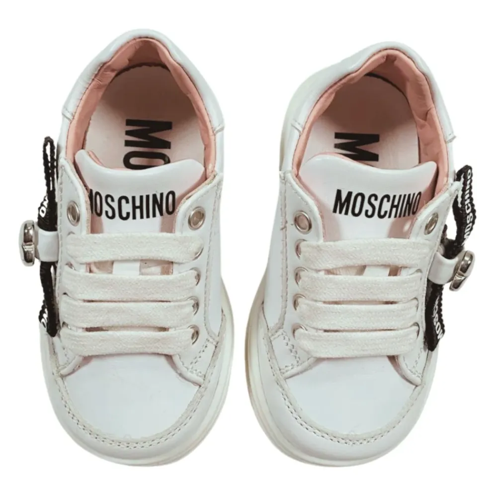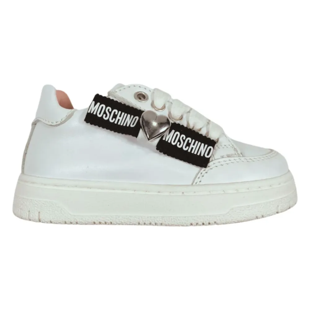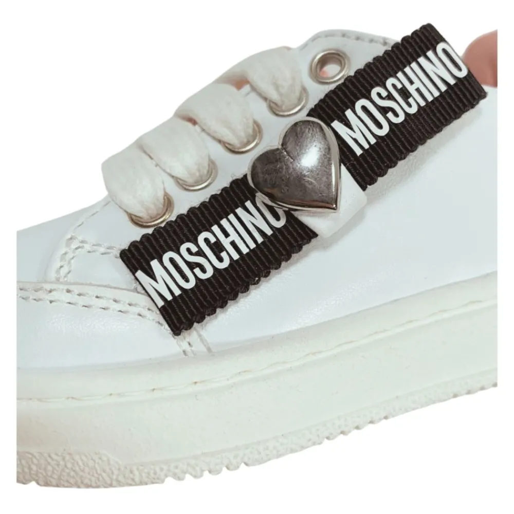 Die Moschino Logo Leder-Sneakers kombinieren verspielte, charakteristische Details mit einer klassischen Lederkonstruktion. Der Style zeichnet sich durch das geprägte Seitenlogo und den silbernen, herzförmigen Anhänger aus, während eine strapazierfähige Gummisohle für den Alltag sorgt. Hauptmerkmale: Weiß | Leder | Schnürverschluss vorne | Gummisohle | Lederfutter | Kontrastierende schwarze Details | Geprägtes Seitenlogo | Silberner, herzförmiger Anhänger | Runde Spitze | Logo-Print auf der Zunge | Kontrastierendes rosa Lederinterieur | Zusammensetzung und Pflege: Obermaterial aus Leder | Lederfutter | Gummisohle
