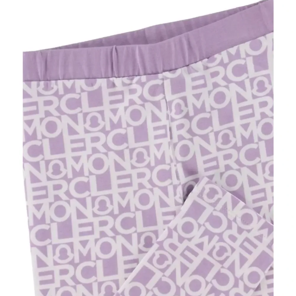 Moncler Kids Leggings aus weichem lila Jersey mit allgegenwärtigen Moncler-Logos, enge Passform mit elastischem Bund. Stoffdetails: 95% Baumwolle, 5% Elastan.