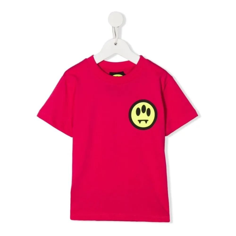 Barrow Kids T-Shirt mit kurzen Ärmeln aus dunkelroter Baumwolle mit Markenlogo-Druck auf Vorder- und Rückseite, Rundhalsausschnitt, kurzen Ärmeln und geradem Saum.