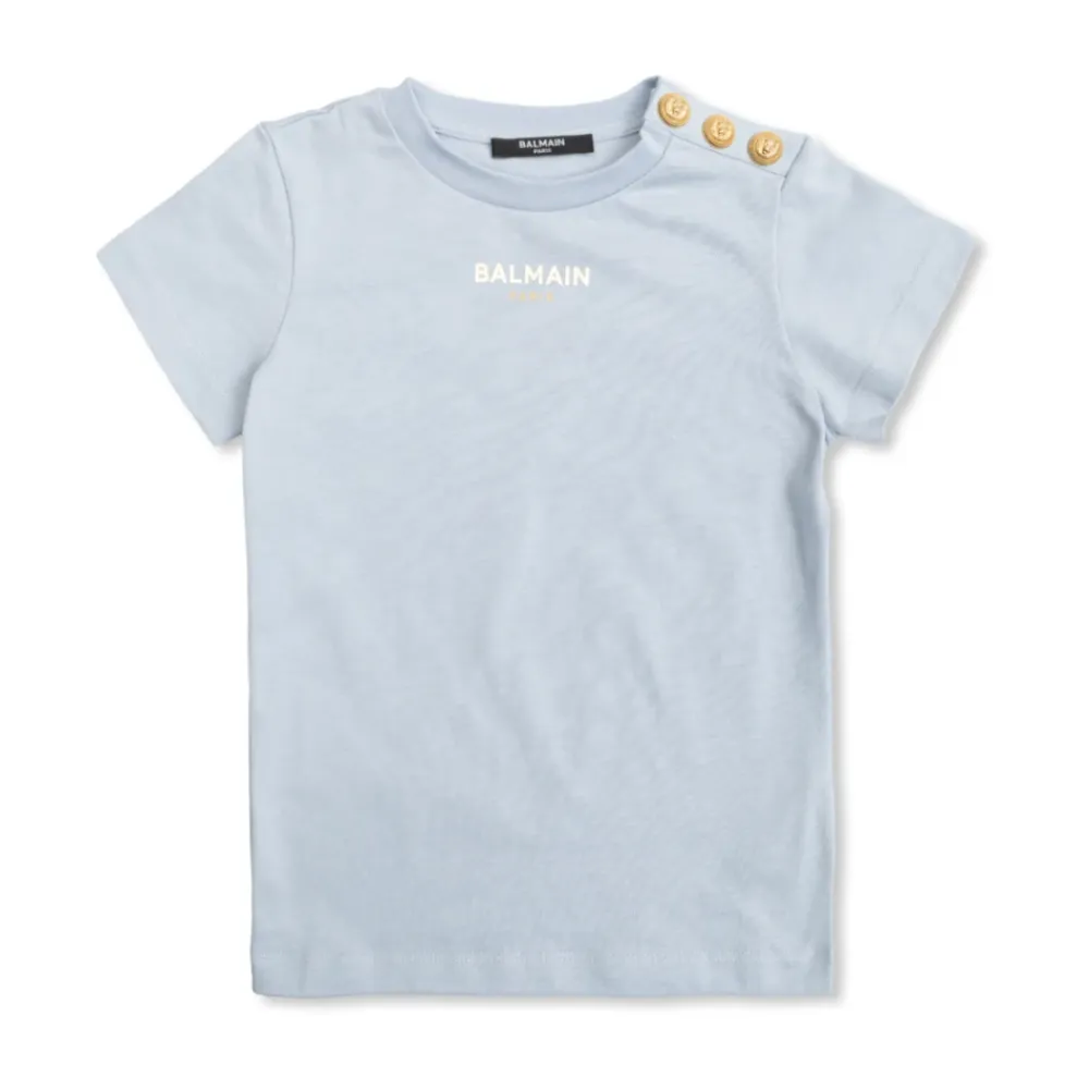 Balmain präsentiert das Logo T-Shirt, ein minimalistisches hellblaues Tee, das durch ein markantes goldenes Frontlogo und dekorative Schulterknöpfe für einen gehobenen Alltagslook definiert wird. Hauptmerkmale: Blau | Hellblau | Baumwolle | Weicher Stoff | Strapazierfähig | Runder Ausschnitt | Kurze Ärmel | Goldenes BALMAIN PARIS Logo auf der Vorderseite | Dekorative geprägte Knöpfe an der linken Schulter | Schlichter Schnitt mit fertigen Kanten und präzisen Nähten | Abmessungen & Passform: Normale Passform