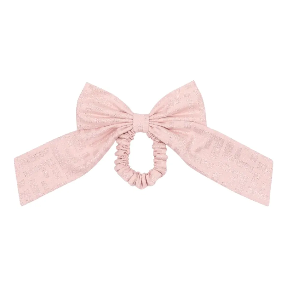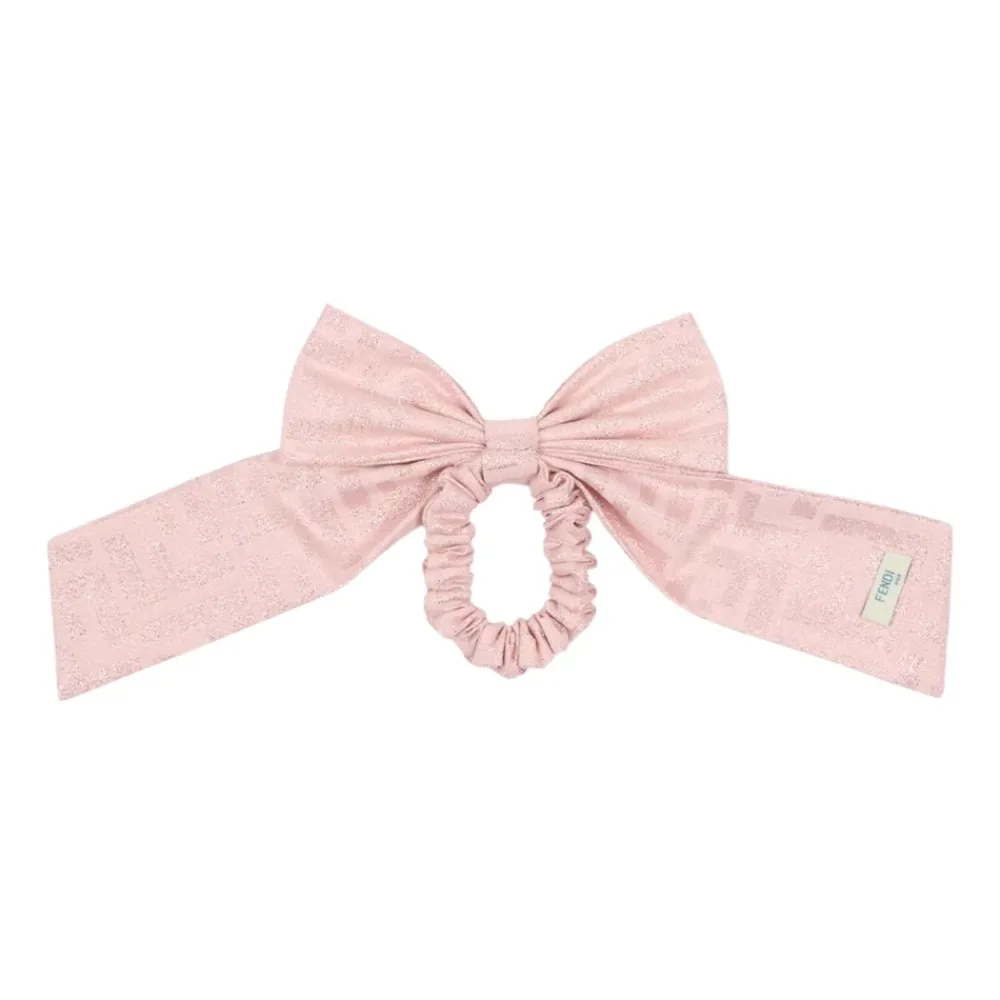 Fendi Lurex Bow Scrunchie verleiht dem Haar mit einer strukturierten Lurex-Schleife einen metallischen Akzent. Es kombiniert dekorativen Stil mit alltäglichem Halt für einfaches Haarstyling. Hauptmerkmale: Pink | Lurex | Schleifendetail | Lurex-Finish | FF-Logo-Detail