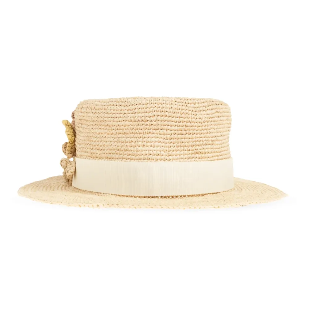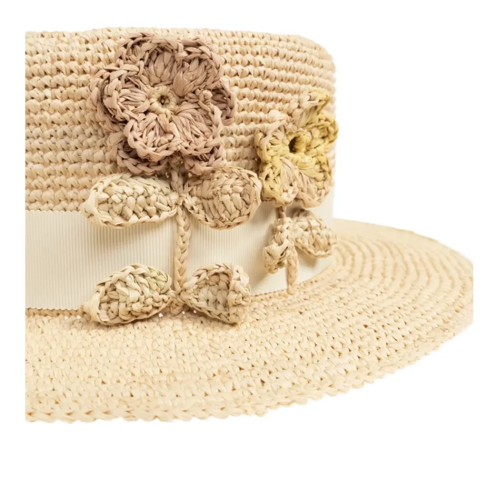 Der Bonpoint Lyse Hut kombiniert eine flache, von einem Boater inspirierte Silhouette mit handgewebtem Raffia für leichten Komfort und zarte, handwerkliche Details. Hauptmerkmale: Beige | Raffia | Leicht | Atmungsaktiv | Handgefertigt | Flaches, boaterförmiges Design | Breite Krone und deutliche Krempe | Cremefarbenes Stoffband | Blumen- und Blätterapplikation | Keine sichtbaren Logos | Zusammensetzung & Pflege: 100% Raffia | Nicht waschen.