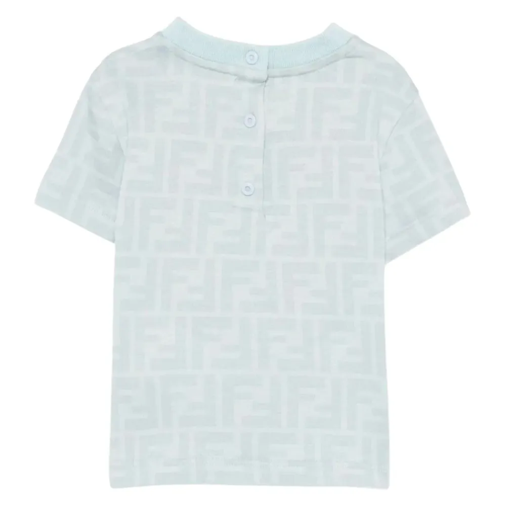 Das Fendi MACIELO T-Shirt kombiniert eine klassische Silhouette mit Rundhalsausschnitt mit dem markentypischen Allover-FF-Logo für einen eleganten Alltagslook. Es wird in Italien aus 100 % Baumwolle gefertigt und bietet atmungsaktiven Komfort und klare Linien. Hauptmerkmale: Blau | Cielo | Baumwolle | Rundhalsausschnitt | Kurze Ärmel | Allover-FF-Logo | Gerader Saum | Maße und Passform: Normale Passform | Material und Pflege: 100 % Baumwolle