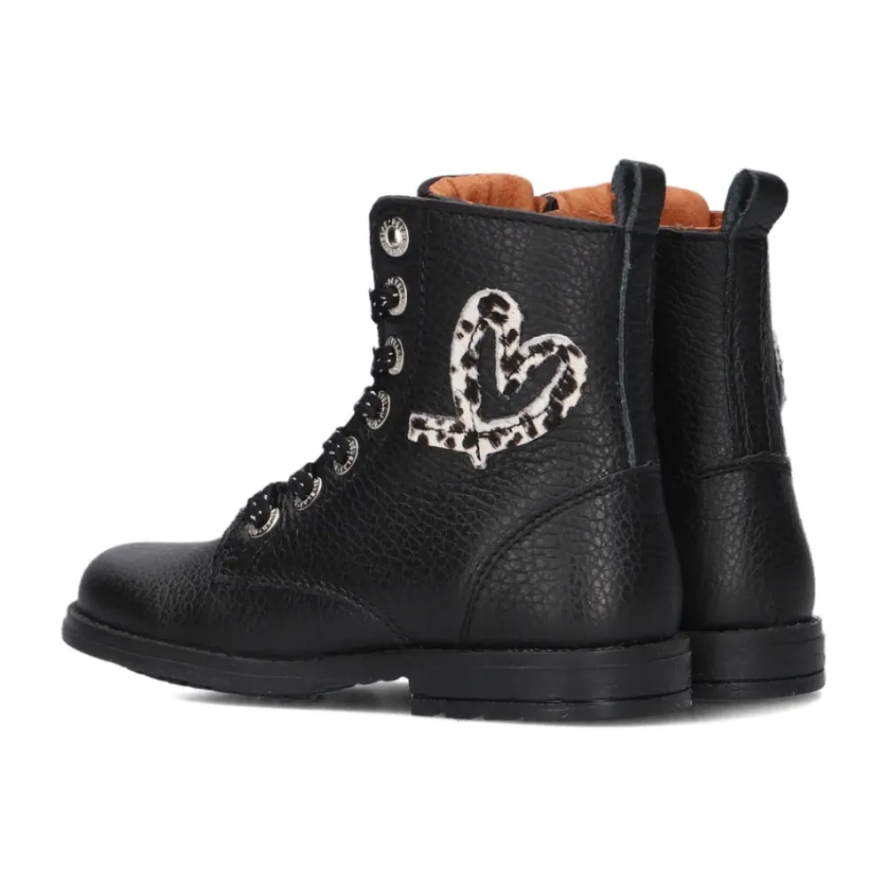 Lassen Sie das Abenteuer mit diesen coolen Schnürstiefeln 42794 der Marke DEVELAB beginnen! Hergestellt aus strukturiertem schwarzem Leder mit robusten Details wie Metallösen, Markenetikett auf der Zunge und einem Herz auf dem Schaft mit Ponyhaar. Der seitliche Reißverschluss ermöglicht es Ihrer kleinen Tochter, diese Schuhe selbstständig an- und auszuziehen, sodass Sie Ihre Hände frei haben. Das mit Leder gefütterte Innenleben verfügt über eine herausnehmbare Innensohle. Die Gummisohle ist mit einem rutschfesten Profil versehen, um stundenlanges Rennen und Spielen zu ermöglichen. Betonen Sie Ihren coolen Look, indem Sie sie mit Ihren Lieblingsjeans oder Kleid kombinieren.