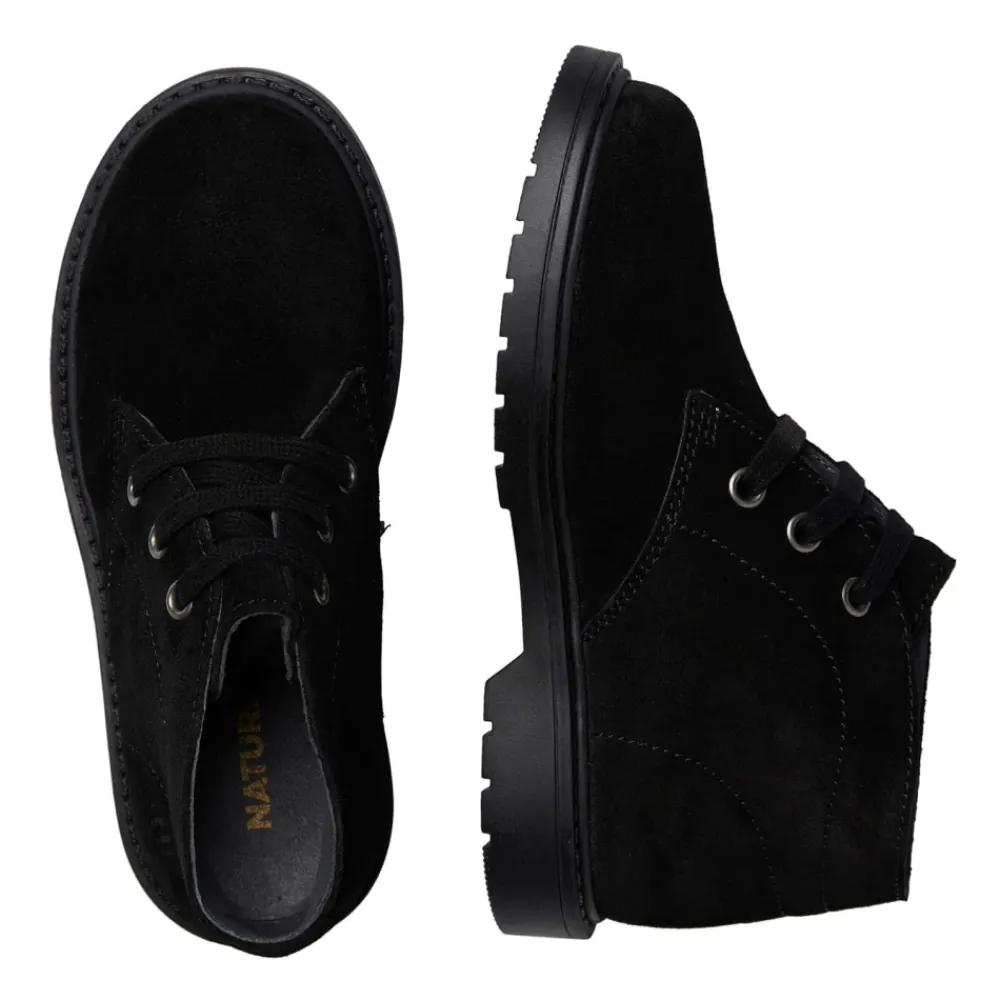 Naturino Malmy ist ein Desert-Boot aus Wildleder, der ein weiches Wildleder-Obermaterial mit einem Lederfutter und einer speziell entworfenen Gummisohle kombiniert. Er ist für den täglichen Gebrauch konzipiert und bietet eine klassische, knöchelhohe Silhouette mit sicherem Schnürverschluss. Hauptmerkmale: Schwarz | Wildleder | Schnürverschluss | Lederfutter | Desert-Boot-Silhouette | Knöchelhöhe | Speziell entworfene Gummisohle | Materialzusammensetzung und Pflege: Wildleder | Leder | Gummi