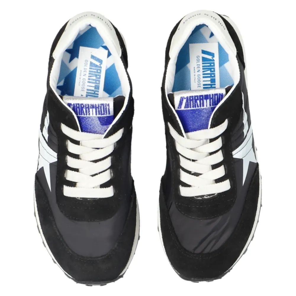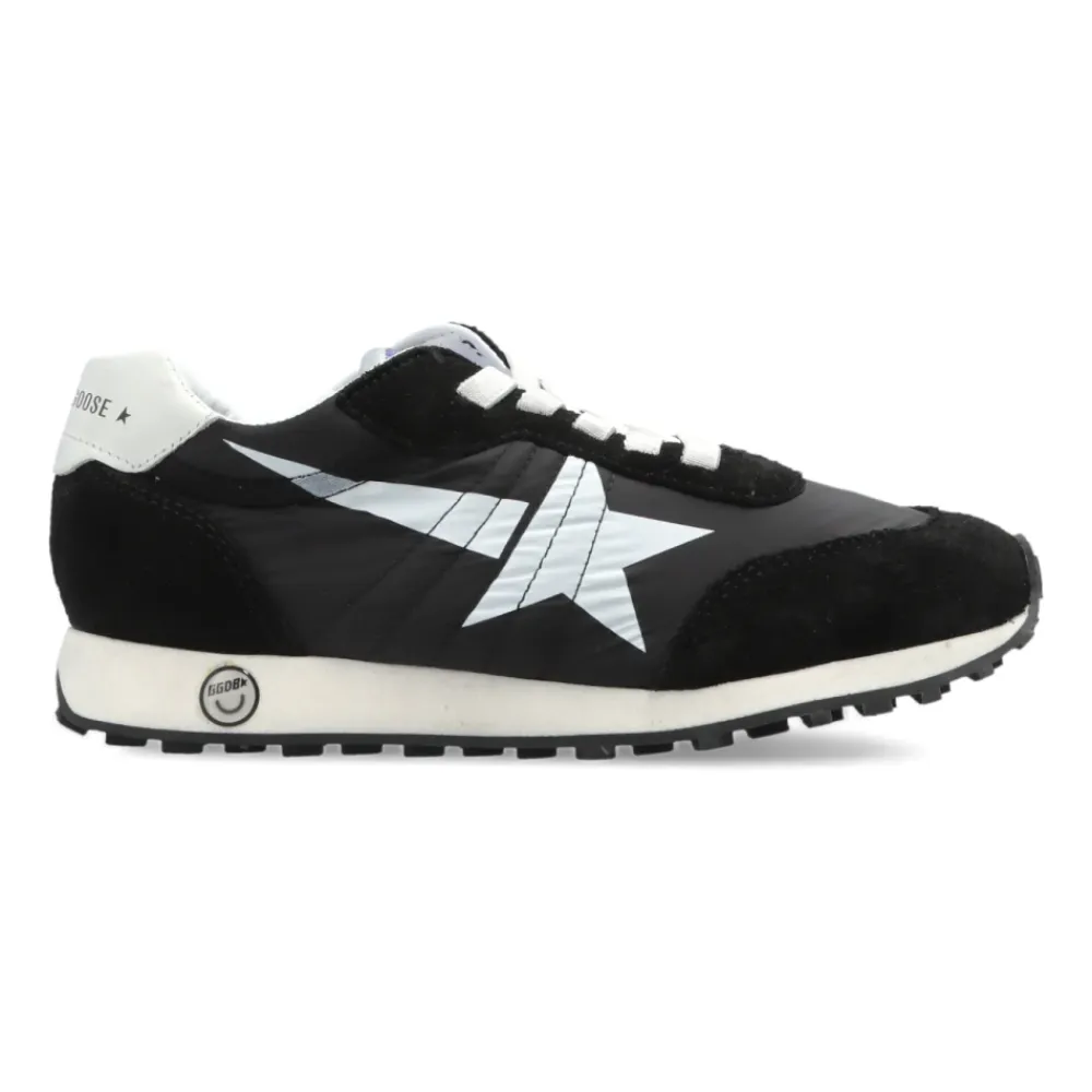 Der Golden Goose Marathon Sneaker kombiniert ein Obermaterial aus verschiedenen Materialien mit einem auffälligen Stern an der Seite für eine sportliche Low-Top-Silhouette, die sich für aktive Alltagsbekleidung eignet. Hauptmerkmale: Schwarz | Nylon, Leder, Wildleder | Rutschfeste Gummisohle | Leichte Konstruktion | Handgefertigt | Jacquard-Schnürsenkel | Fersenlasche aus Leder | Low-Top-Sneaker-Silhouette | Großer aufgedruckter Stern an der Seite | Logo an Ferse und Zunge | Obermaterial aus verschiedenen Materialien mit Wildledereinsätzen | Kontrastierendes Smiley-Detail am Fersenrand | Maße und Passform: Sohlenhöhe am höchsten Punkt: 2,5 cm | Zusammensetzung und Pflege: Obermaterial: 54 % Polyamid, 39 % Rindsleder, 7 % Schafsleder | Futter: 49 % Schafsleder, 33 % Baumwolle, 14 % Polyester, 4 % textiles Polyurethan | Sohle: 100 % Gummi