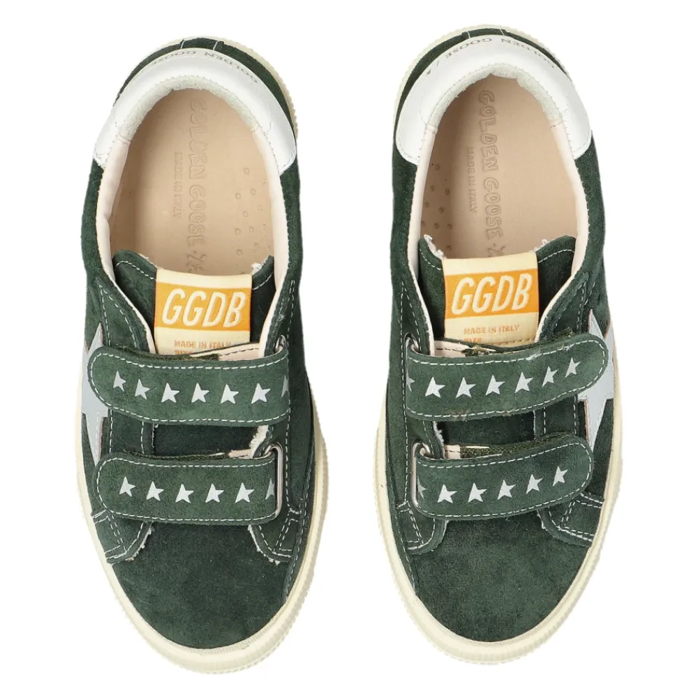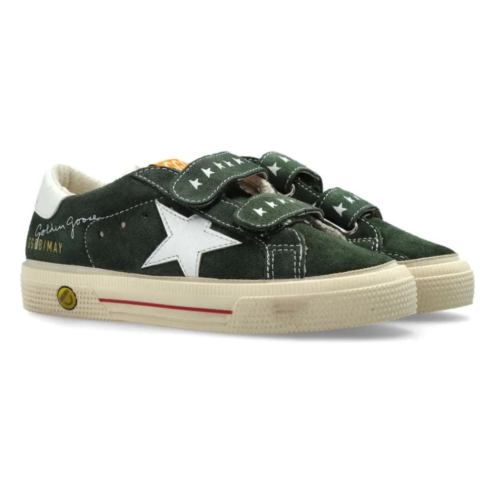 Die Golden Goose May School Sportschuhe kombinieren eine klassische Low-Top-Silhouette mit einem markanten, mattgrünen Wildleder-Obermaterial und sichtbaren Nähten für einen raffinierten, Vintage-inspirierten Look. Der Schuh kombiniert eine einfache Klettbefestigung mit Designmerkmalen – weißem Stern-Detail und goldenem Fersen-Schriftzug – für alltäglichen Stil und Komfort. Hauptmerkmale: Grün | Wildleder | Lederfutter für Komfort | Flexible Gummisohle für Strapazierfähigkeit | Doppelter Klettverschluss für einfaches An- und Ausziehen | Klettverschlüsse mit weißen Sternen verziert | Low-Top-Silhouette mit abgerundeter Zehenpartie | Sichtbare Nähte und sorgfältige Verarbeitung | Cremefarbene flache Sohle mit gewollten Used-Look und dezentem rotem Detail | Weißer Stern auf den Seitenwänden | Goldener Schriftzug an der Ferse | Maße & Passform: Sohlenhöhe: 2,5 cm | Zusammensetzung & Pflege: Wildleder | Leder | Gummi