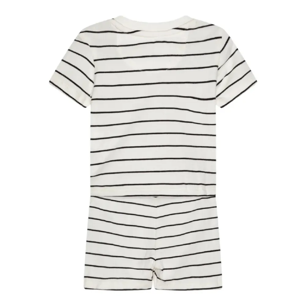 Das Calvin Klein Stripe SS Set für Babys ist die perfekte Mischung aus Stil, Komfort und Frische. Dieses Set, bestehend aus einem kurzärmeligen Shirt und Shorts, wurde entwickelt, um Ihrem Baby den ganzen Tag über maximalen Komfort zu bieten, während es einen modernen und raffinierten Stil zeigt. Das horizontale Streifendesign in sanften Farben, kombiniert mit dem ikonischen Calvin Klein-Logo, verleiht einen lustigen und eleganten Touch, perfekt für die Kleinen. Das kurzärmelige Shirt besteht aus weicher Baumwolle, ideal, um Ihr Baby kühl und bequem zu halten. Die Shorts mit elastischem Bund bieten eine perfekte Passform und sind einfach an- und auszuziehen, was Ihrem Baby Bewegungsfreiheit ermöglicht, um in totaler Bequemlichkeit zu erkunden und zu spielen. Dieses Set ist perfekt für den täglichen Gebrauch, ob für einen Ausflug in den Park, einen Besuch bei der Familie oder einfach zum Entspannen zu Hause.