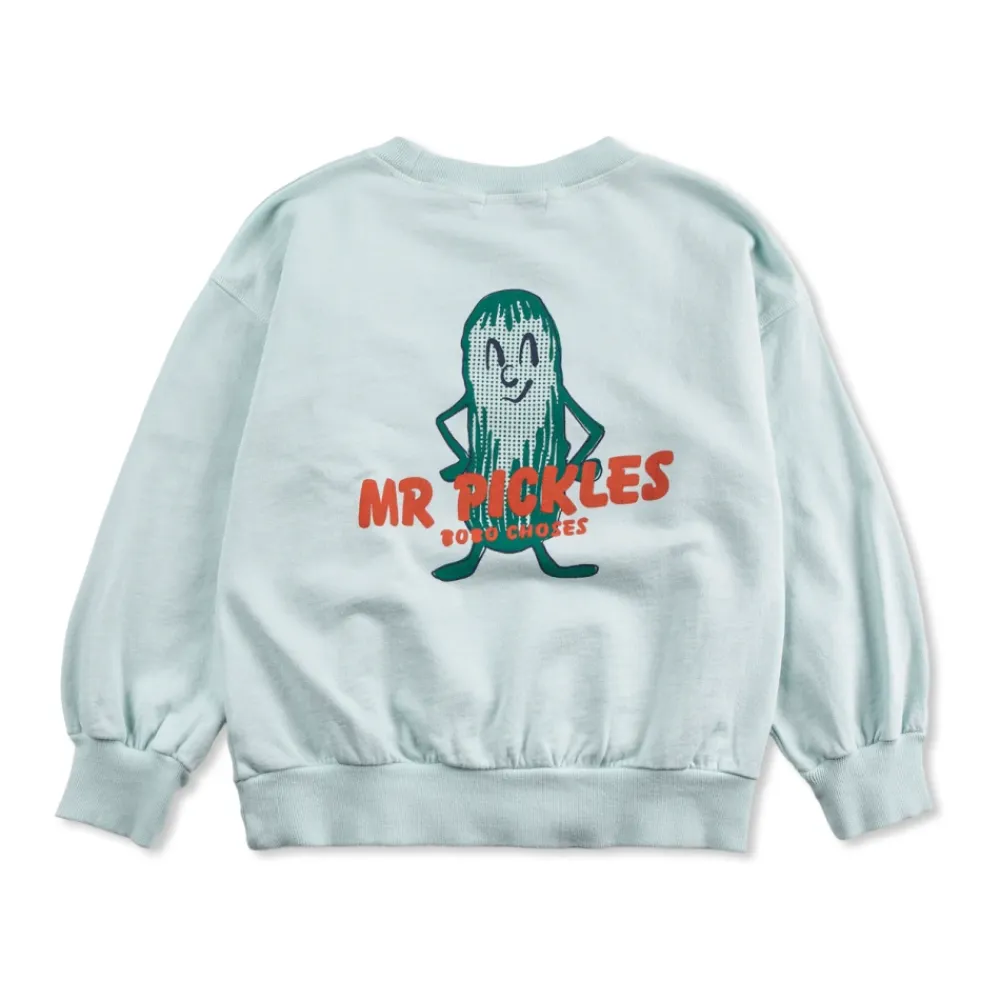Das Bobo Choses Mr Pickles Sweatshirt ist ein hellblaues Sweatshirt mit Rundhalsausschnitt, das ein dezentes, gesticktes Logo mit einer weichen Baumwollkonstruktion für bequemen Alltagskomfort verbindet. Sein schlichtes Design und die gerippten Abschlüsse machen es zu einem unkomplizierten Layering-Teil für lässige Outfits. Wichtige Merkmale: Blau | Hellblau | Baumwolle | Weiches Griffgefühl | Atmungsaktives Material | Einfach zu kombinieren | Bequem für den täglichen Gebrauch | Rundhalsausschnitt | Breite Rippstrickbündchen an Ausschnitt, Ärmeln und Saum | Gesticktes Logo auf der linken Brust | Maße & Passform: 2-3J — Brust 40 cm, Länge 40 cm, Ärmellänge 25 cm | 4-5J — Brust 43 cm, Länge 44 cm, Ärmellänge 30 cm | 6-7J — Brust 45.5 cm, Länge 49 cm, Ärmellänge 35 cm | 8-9J — Brust 48 cm, Länge 52 cm, Ärmellänge 39.5 cm | 10-11J — Brust 50.5 cm, Länge 58 cm, Ärmellänge 44.5 cm | 12-13J — Brust 53 cm, Länge 62.5 cm, Ärmellänge 48.5 cm | Relaxed Fit | Leicht entspannte Silhouette für mehr Bewegungsfreiheit | Zusammensetzung & Pflege: 100% Baumwolle | Maschinenwäsche kalt (30°C). Nicht bleichen. Nicht im Trockner trocknen. Nicht chemisch reinigen. Bügeln bei niedriger Temperatur.