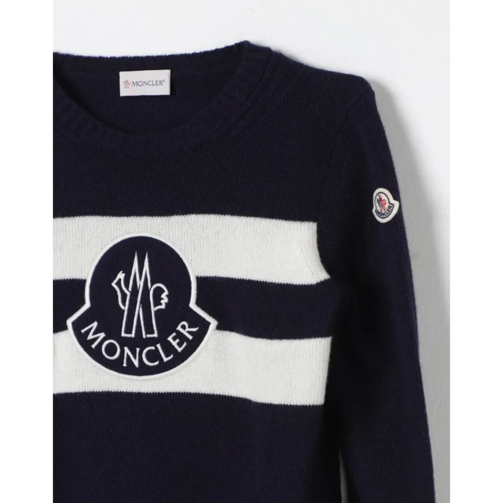 Ergänze deine Garderobe mit dem Moncler Navy Pullover Sweater, der für Komfort und Stil bei jedem Tragen entworfen wurde. Dieser Sweater aus 100 % Wolle sorgt für Wärme und Strapazierfähigkeit. Wichtige Merkmale: Navy | Blau | Wolle | Klassischer Ausschnitt | Lange Ärmel | Moncler Branding | Maße und Passform: Normale Passform | Zusammensetzung und Pflege: 100% Wolle | Nur chemische Reinigung.