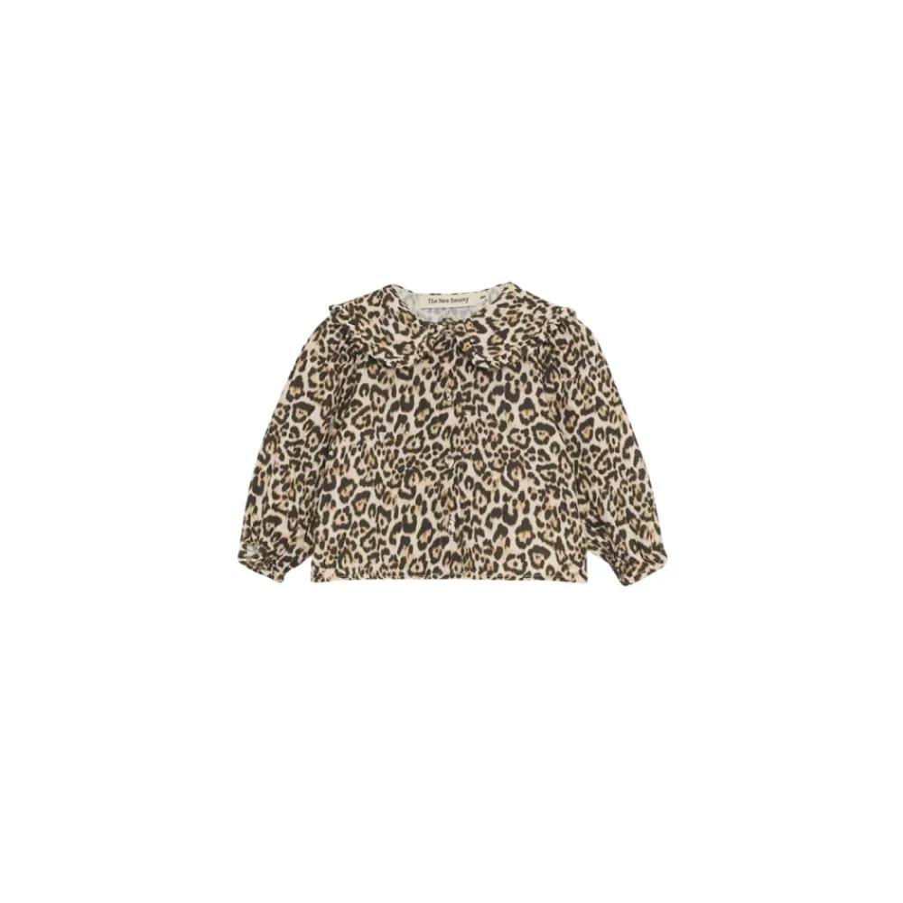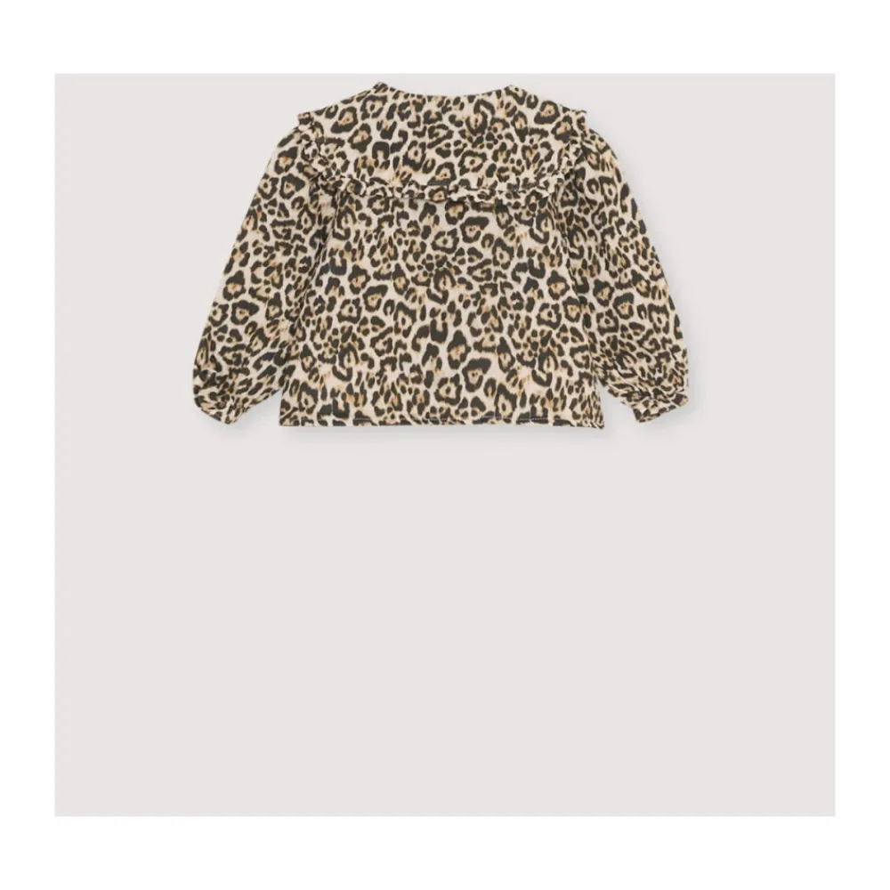 Baby Leopard Print Double Gauze Blouse. Weich und atmungsaktiv, diese Babybluse ist aus doppelter Gaze-Baumwolle gefertigt und verfügt über ein verspieltes Leopardenmuster. Sie hat ein zartes Kragendetail und eine vordere Öffnung mit stoffbezogenen Knöpfen. Kombinieren Sie sie mit der passenden Hose für einen kompletten Look. Hergestellt in Portugal. 100% Baumwolle.