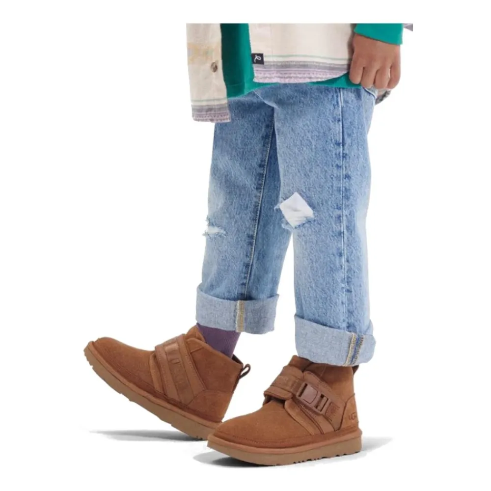 Halten Sie die Füße Ihres kleinen Mannes warm und stilvoll mit UGGs Neumel Snapback Boots. Hergestellt aus 100% Wildleder außen und gefüttert mit 80% Wolle und 20% Lyocell, sind diese Stiefel perfekt für kältere Tage. Die Treadlite-Sohle sorgt für Langlebigkeit und Komfort für den ganzen Tag. Produkt Style ID: 194715320406.