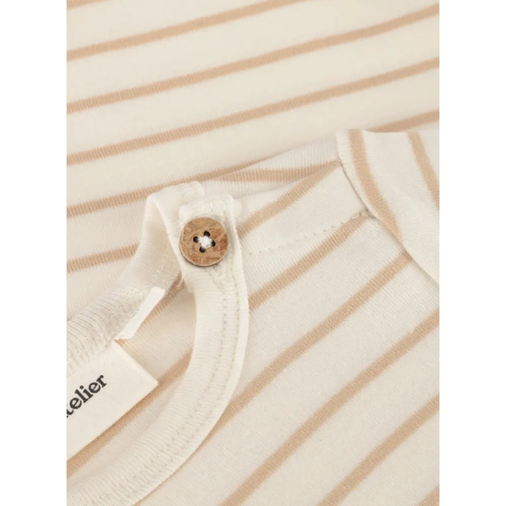Entdecken Sie den niedlichen NBMGEO ANM SS BODY LIL von Lil‘ Atelier, perfekt für die Kleinen im Frühling und Sommer. Hergestellt aus weicher Bio-Baumwolle, bietet dieser beige Strampler ultimativen Komfort für Ihr Kleines. Ideal für ein Picknick im Park oder einen entspannten Nachmittag im Garten. Kombinieren Sie mit luftigen Latzhosen für einen vollständigen Look, der sowohl stilvoll als auch praktisch ist. Der neutrale Ton erleichtert das Kombinieren mit anderen Sommerkleidungsstücken. Lassen Sie Ihr Kleines die sonnigen Tage in Stil und Komfort genießen.