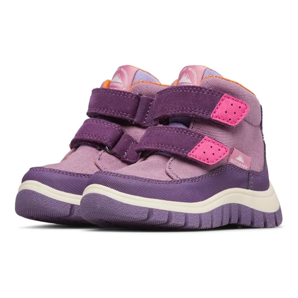 Naturino NEW PILE VL WP. Stiefel kombinieren Wildleder und technisches Gewebe mit einem Doppelriemenverschluss für einfaches An- und Ausziehen. Ihre Silhouette über dem Knöchel und die rutschfeste Gummisohle machen sie ideal für kältere, nasse Bedingungen. Hauptmerkmale: Lila | Violett | Wildleder und technisches Gewebe | Rutschfeste Gummisohle | Doppelriemenverschluss | Bequeme und komfortable Passform | Silhouette über dem Knöchel | Kontrastnähte | Kontrastfutter | Obermaterial aus Wildleder und technischem Gewebe | Zusammensetzung und Pflege: Wildleder | Technisches Gewebe | Leder | Textil