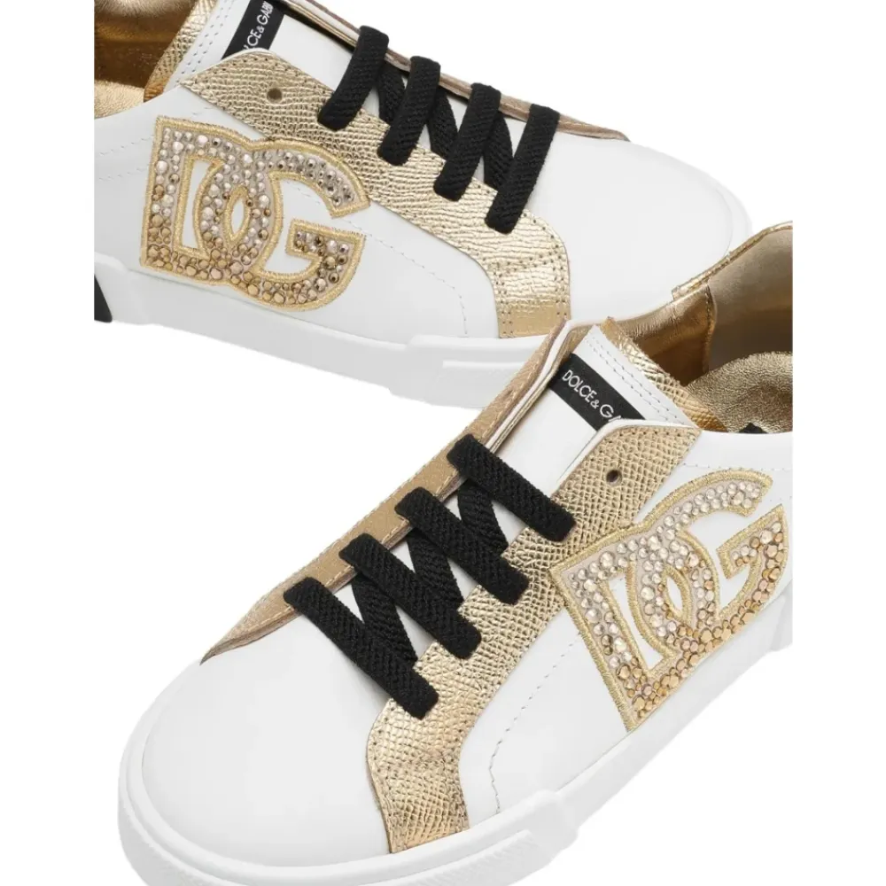 Niedriger Weiß/Gold Sneaker>Dolce & Gabbana
