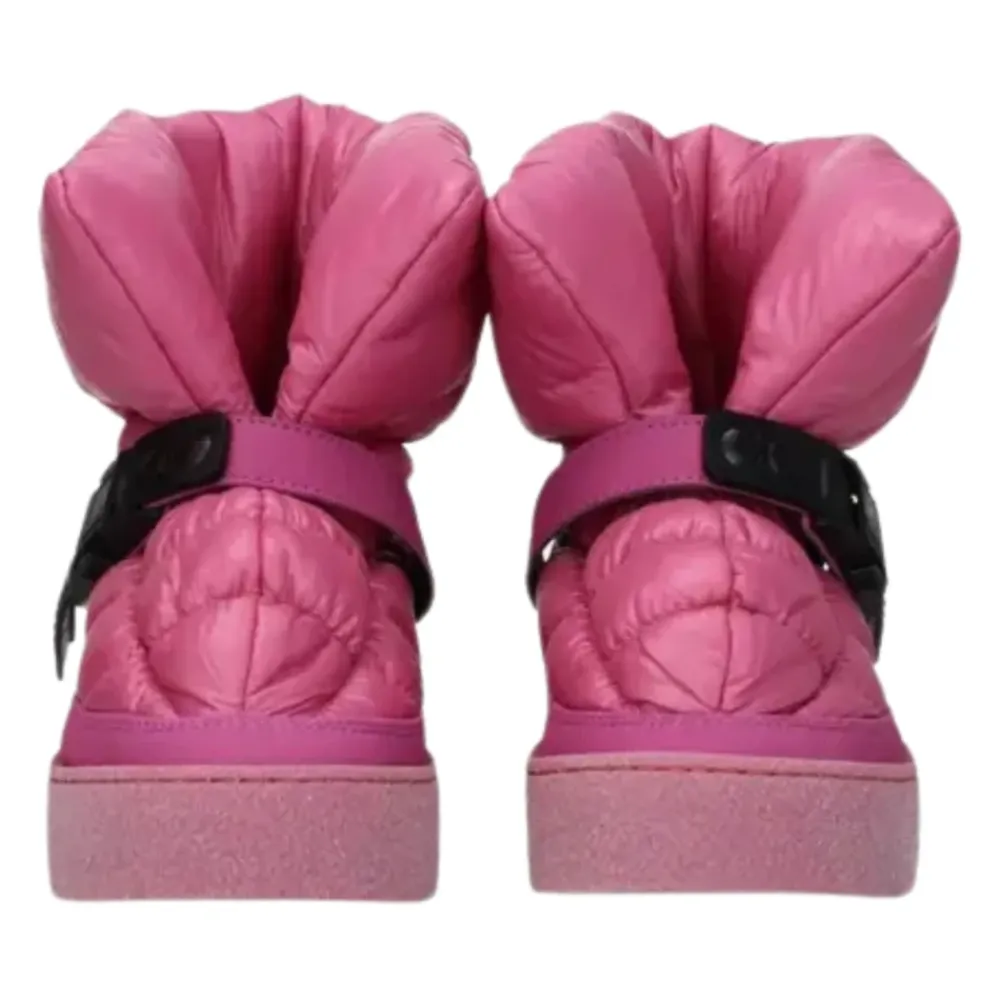 Khrisjoy präsentiert die Nylon Gesteppten Ballerinas, entworfen für verschneite Abenteuer mit einem stilvollen Touch. Diese Schuhe vereinen Funktionalität und Mode und sorgen für Wärme und Komfort. Wichtige Merkmale: Pink | Glänzendes technisches Material | Verstellbarer Schnallenriemen | Runde Zehenpartie | Sherpa-Futter | Logo auf der Rückseite gedruckt | Zusammensetzung und Pflege: 100% Polyamid