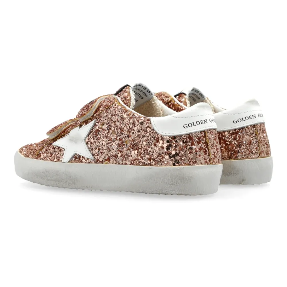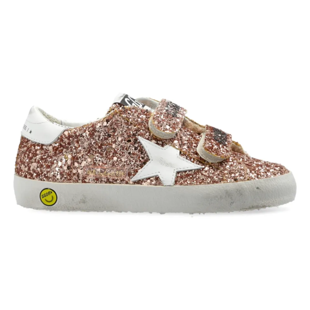 Die Old School Sneakers von Golden Goose sind eine luxuriöse Mischung aus Stil und Komfort, mit einer auffälligen pinkfarbenen Gestaltung und glitzernden Verzierungen. Wichtige Merkmale: Pink | Leder | Stoff | Klettverschluss | Weißer Stern | Distressed-Sohle | GGDB-Logo auf der Zunge | Maße und Passform: Normale Passform | Zusammensetzung und Pflege: Leder | Stoff | Mit einem weichen Tuch abwischen. Kunden haben berichtet, dass diese Marke eher groß ausfällt. Wir empfehlen, eine Nummer kleiner als Ihre übliche Größe zu wählen.
