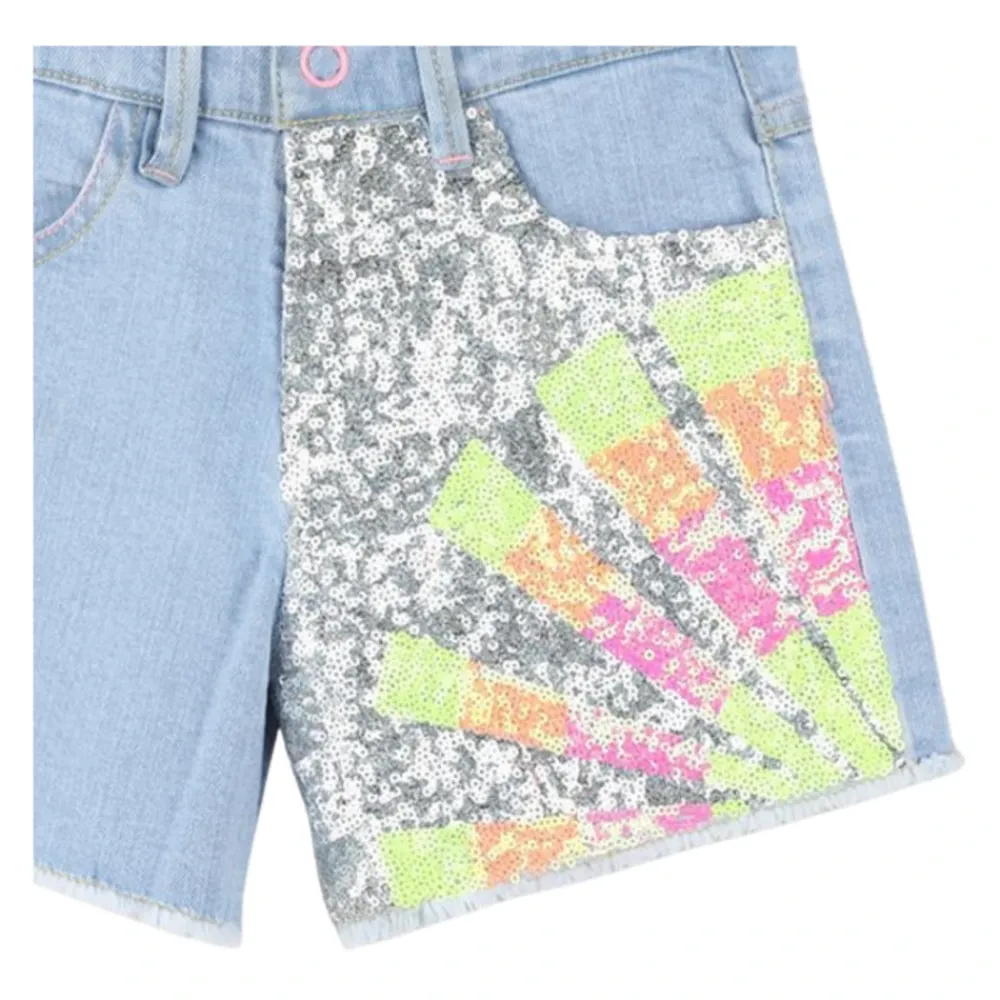 Die Billieblush Pailletten-Jeansshorts kombinieren verspielte Pailletten-Details mit klassischem Jeans-Styling für einen herausragenden Casual-Look. Sie sind für den täglichen Gebrauch konzipiert und verfügen über eine reguläre Taille und eine funkelnde Applikation für zusätzliche Persönlichkeit. Hauptmerkmale: Blau | Denim | Baumwolle | Knopf- und Reißverschluss | Innere elastische Bündchen | Vier-Taschen-Design | Verstellbare Taille | Pinke Kontrastnähte | Mehrfarbige Pailletten-Applikation | Logo-Patch auf der Rückseite | Ausgefranster Saum | Maße und Passform: Reguläre Taille | Materialzusammensetzung und Pflege: 99% Baumwolle, 1% Elasthan | Maschinenwäsche 30°C