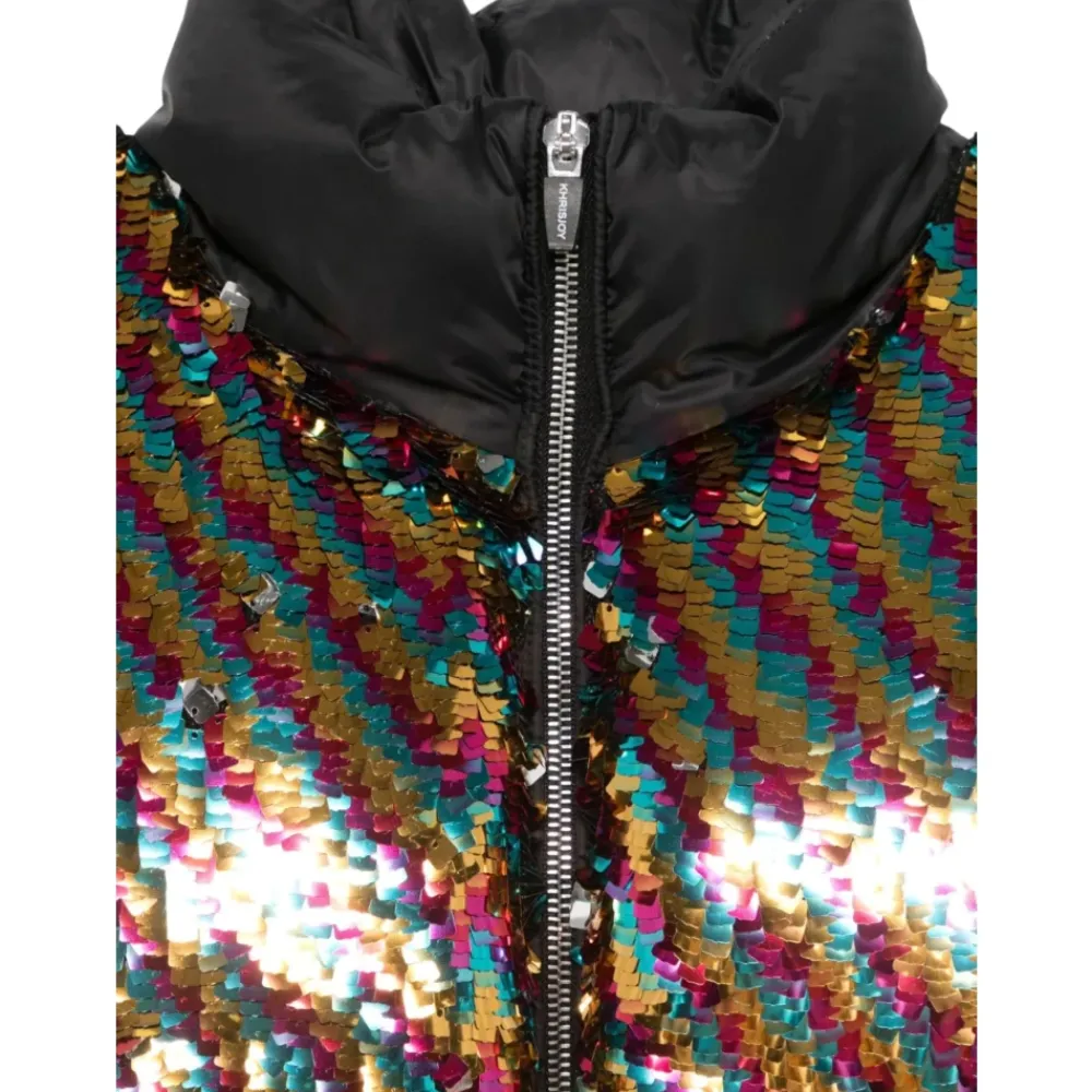 Bleiben Sie warm und stilvoll mit dieser Khrisjoy Paillettenjacke mit Füllung, perfekt für die Wintersaison. Gefertigt aus mehrfarbigen Pailletten und technischem Gewebe, bietet sie sowohl Flair als auch Funktionalität. Wichtige Merkmale: Multicolor | Technisches Gewebe | Reißverschluss | Zwei Seitentaschen | Kordelzug am Saum | Hoher Kragen | Lange Ärmel mit elastischen Bündchen | Zusammensetzung und Pflege: 100% Nylon | Füllung: 80% Entendaunen, 20% Entenfedern