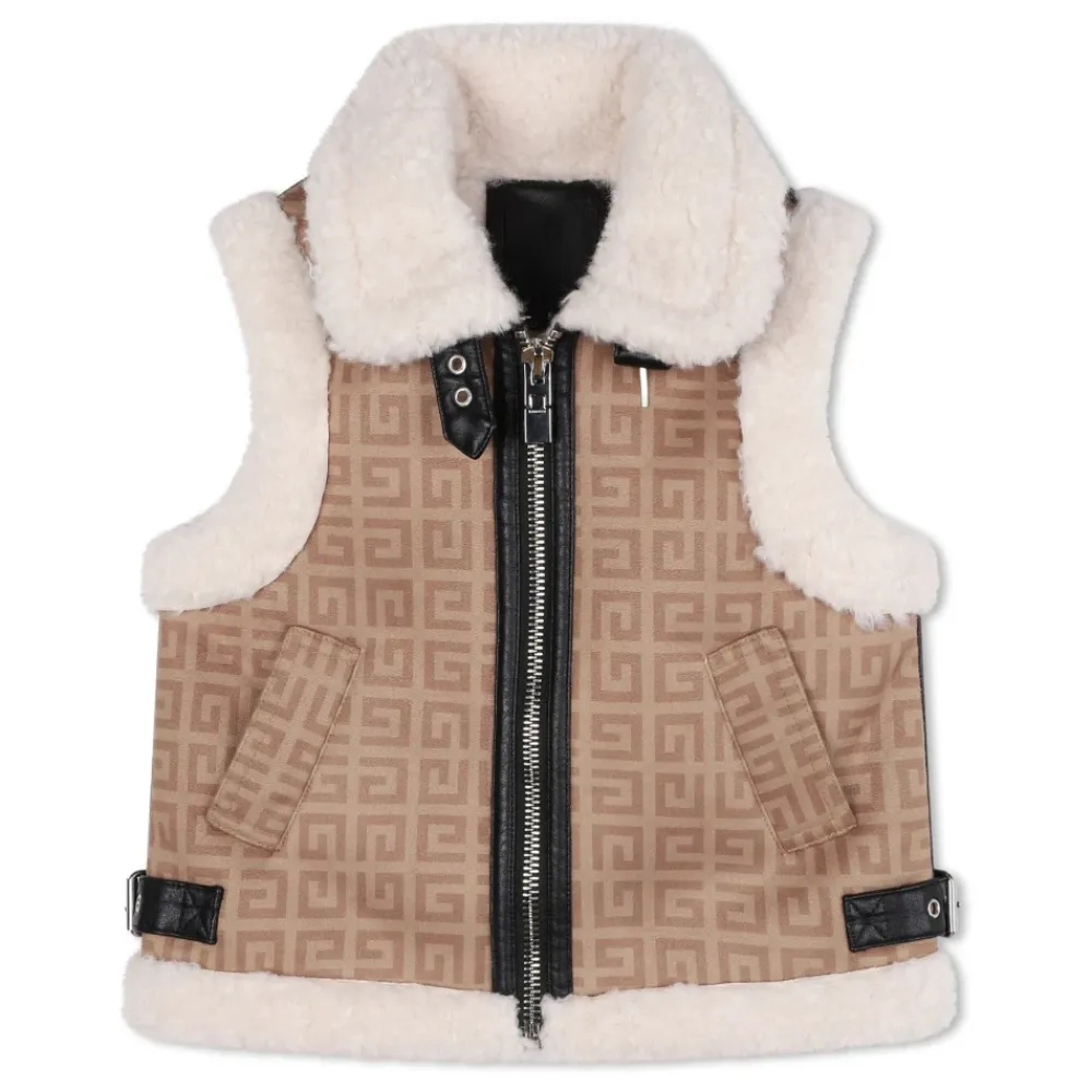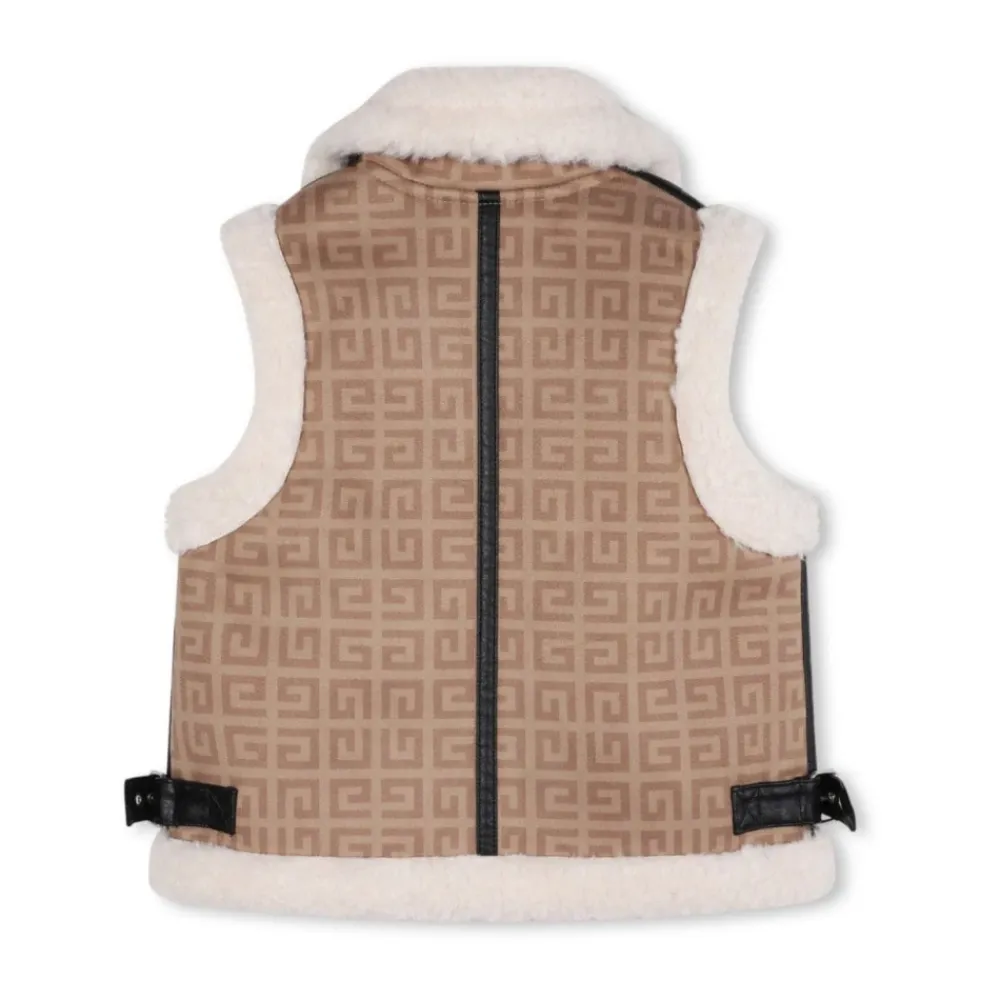 Die Givenchy Pelzweste ist eine schicke und vielseitige Ergänzung für jede Garderobe, mit einem stilvollen Allover-Logo-Print und praktischen Designelementen. Wichtige Merkmale: Beige | Polyester | Frontreißverschluss | Zwei seitliche Leistentaschen | Taillenbänder mit Schnalle | Französischer Kragen | Ärmellos | Gerader Saum | Zusammensetzung und Pflege: 100% Polyester