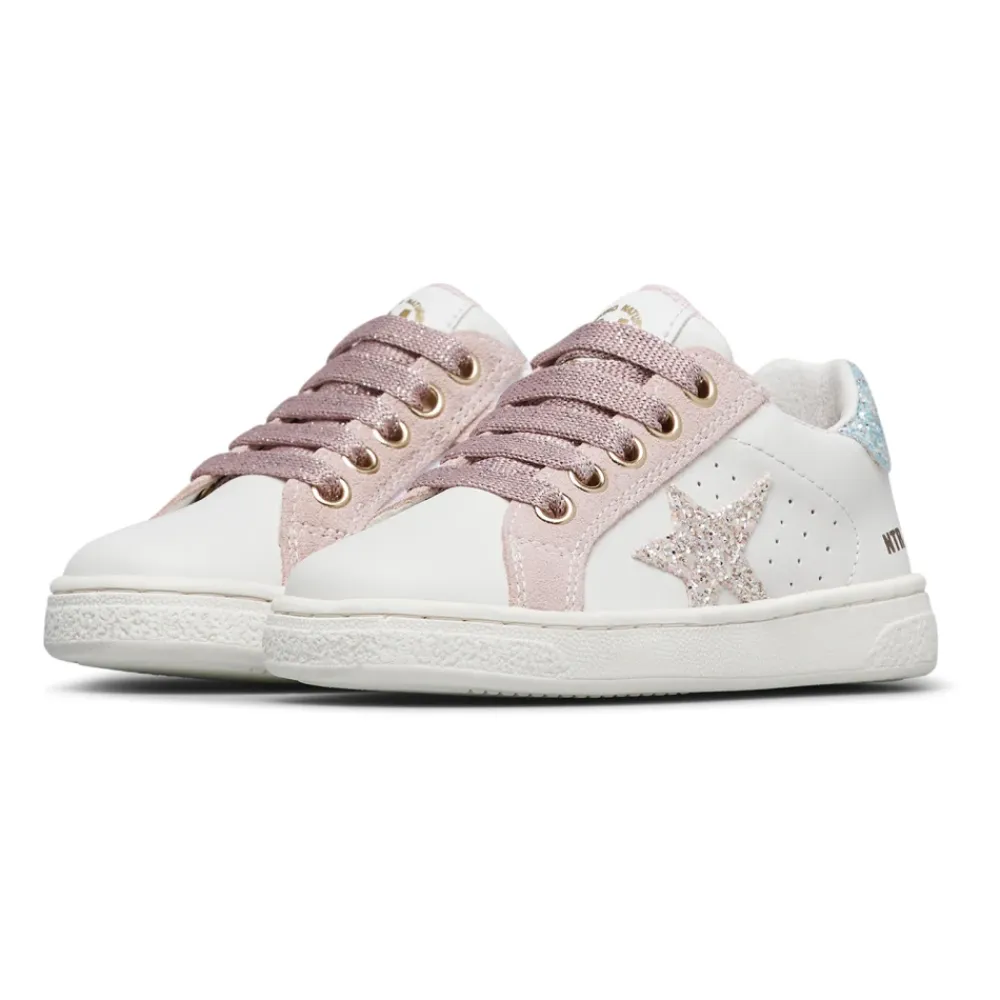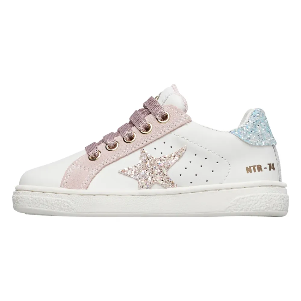Der Naturino Pinn Zip Sneaker kombiniert ein Obermaterial aus Leder mit Glitzerstoffakzenten und einem praktischen internen Reißverschluss für schnelles An- und Ausziehen. Mit einer Innensohle aus Leder und einer Gummiboxsohle ist er für den täglichen Gebrauch geeignet, bei dem Stil und Komfort wichtig sind. Hauptmerkmale: Weiß | Weiß pink hellblau | Leder | Reißverschluss (innen) | Schnürverschluss | Lederfutter | Lederinnensohle | Gummiboxsohle | Stern-Seitenpatch | Glitzerstoff-Topper | Lurex-Schnürsenkel | Zusammensetzung und Pflege: Leder (Obermaterial) | Glitzerstoff (Topper) | Lurex (Schnürsenkel) | Leder (Futter) | Leder (Innensohle) | Gummi (Sohle)