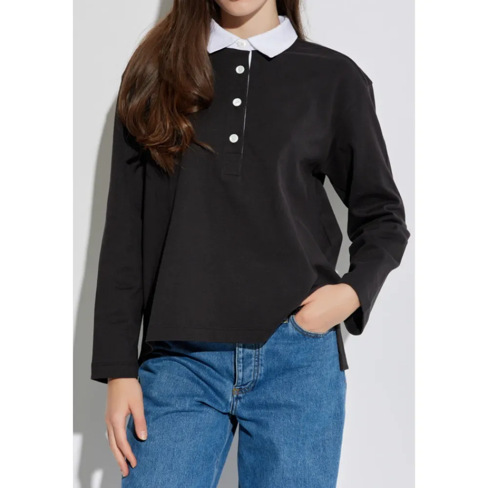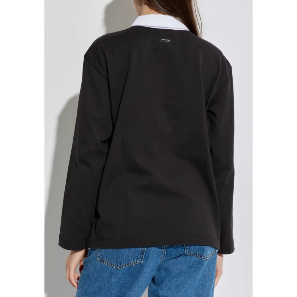 POLOSHIRT MIT LOGO von Kate Spade verkörpert die Essenz zeitloser Raffinesse, wo Moderne auf klassischen Stil trifft. Die sorgfältig gearbeitete, locker sitzende Silhouette mit leicht abgesenkten Schultern und langen Ärmeln strahlt eine subtile Lässigkeit aus und gewährleistet außergewöhnliche Bewegungsfreiheit. Das markante Detail ist der auffällige weiße Polokragen, der einen beeindruckenden Kontrast zum tiefen schwarzen Strickstoff bildet. Die geknöpfte Leiste mit vier perlweißen Knöpfen, von denen jeder mit einer zarten Inschrift verziert ist, bietet eine subtile Anspielung auf den einzigartigen Stil des Designers. Der hochwertige Stoff, der an klassische Baumwolle erinnert, zeichnet sich durch eine raffinierte Textur und Langlebigkeit aus. Sein minimalistischer Effekt, frei von überflüssigem Zierrat, betont die Vielseitigkeit und die bleibende Charakter dieses Stücks. WARUM DIESES PRODUKT KAUFEN? * Zeitloses Design, das Individualität betont * Strapazierfähiges, elegantes Gestrick für ganztägigen Komfort * Einzigartiges Detail: kontrastierender Kragen und charakteristische Knöpfe * Projekt erstellt von der renommierten Marke Kate Spade Modellmaße Höhe: 176 cm Brust: 85 cm Taille: 60 cm Hüften: 89 cm Modell trägt Größe: S