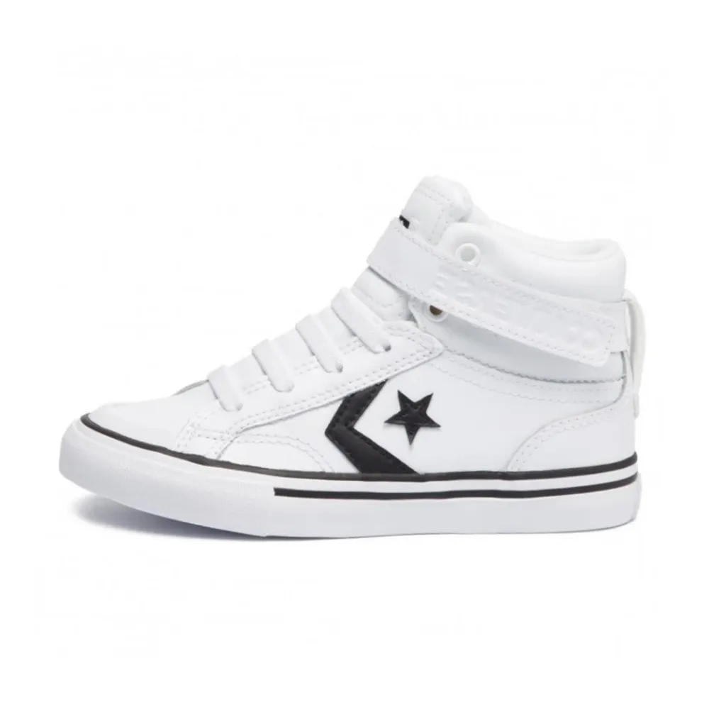 Der authentische Pro Blaze Strap Sneaker von Converse ist aus strapazierfähigem Kunstleder gefertigt und verfügt über einen unterstützenden Riemen mit Logo um den Knöchel. Wir haben das ursprüngliche Design mit Farben, die an den College-Stil erinnern, und wiederholten Logos neu interpretiert. Streetwear, verkleinert.