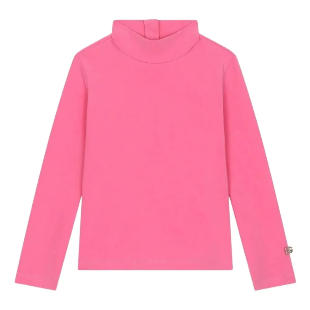 Kleiden Sie Ihre kleine Fashionista stilvoll mit dieser Dolce Gabbana Kids rosa lupetto Bluse. Hergestellt in Italien aus Stretch-Baumwolle, verfügt sie über einen hohen Kragen, Metall-Logo-Initialen am Ärmel, einen Reißverschluss am Rücken und lange Ärmel. Perfekt für jeden Anlass!