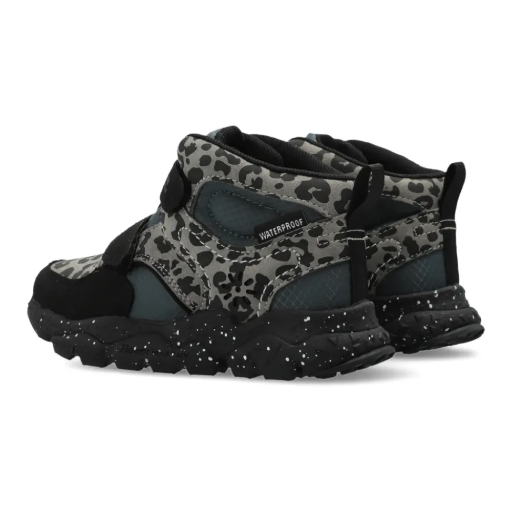 Flower Mountain Riku Sportschuhe kombinieren eine High-Top-Silhouette mit einem tierisch inspirierten Leopardenmuster und einem Obermaterial aus verschiedenen Materialien für einen herausragenden Alltagslook. Das Design bietet ein ausgewogenes Verhältnis von Atmungsaktivität und Wärme für zuverlässigen Komfort unterwegs. Hauptmerkmale: Schwarz | Textil | Atmungsaktive Mesh-Einsätze für Luftzirkulation | Gute Traktion | Doppelte Klettverschlüsse mit dekorativer ‚PONTE 20‘-Inschrift | Pelzartig strukturierte Fütterung für Wärme | Robuste Gummisohle für Grip | High-Top-Silhouette | Tierisch inspiriertes Leopardenmuster | Schwarze Wildleder Einsätze | Designer ‚SUPERFROG‘ Seiteninschrift | Abmessungen & Passform: Sohlenhöhe am höchsten Punkt: 3 cm | Über dem Knöchel (High-Top) | Zusammensetzung & Pflege: Innenschicht: 100% Stoff | Außenschicht: 100% Stoff | Sohle: 100% Gummi