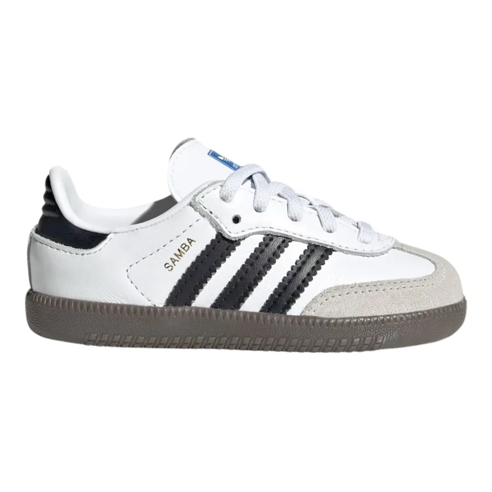 Machen Sie Ihr Kleines bereit, ihre ersten Schritte mit Stil zu machen mit diesen Adidas Originals Samba OG Infant Sneakers. Mit ihrem klassischen weißen und schwarzen Design sind diese Mini-Sneaker perfekt für den ganztägigen Spielspaß mit ihrer weichen Innensohle und der strapazierfähigen Leder- und Gummikonstruktion. Der elastische Schnürverschluss macht sie einfach an- und auszuziehen, während die ikonischen 3-Streifen einen Hauch von sportlichem Flair hinzufügen. Perfekt für die Frühjahr-Sommer-Saison.