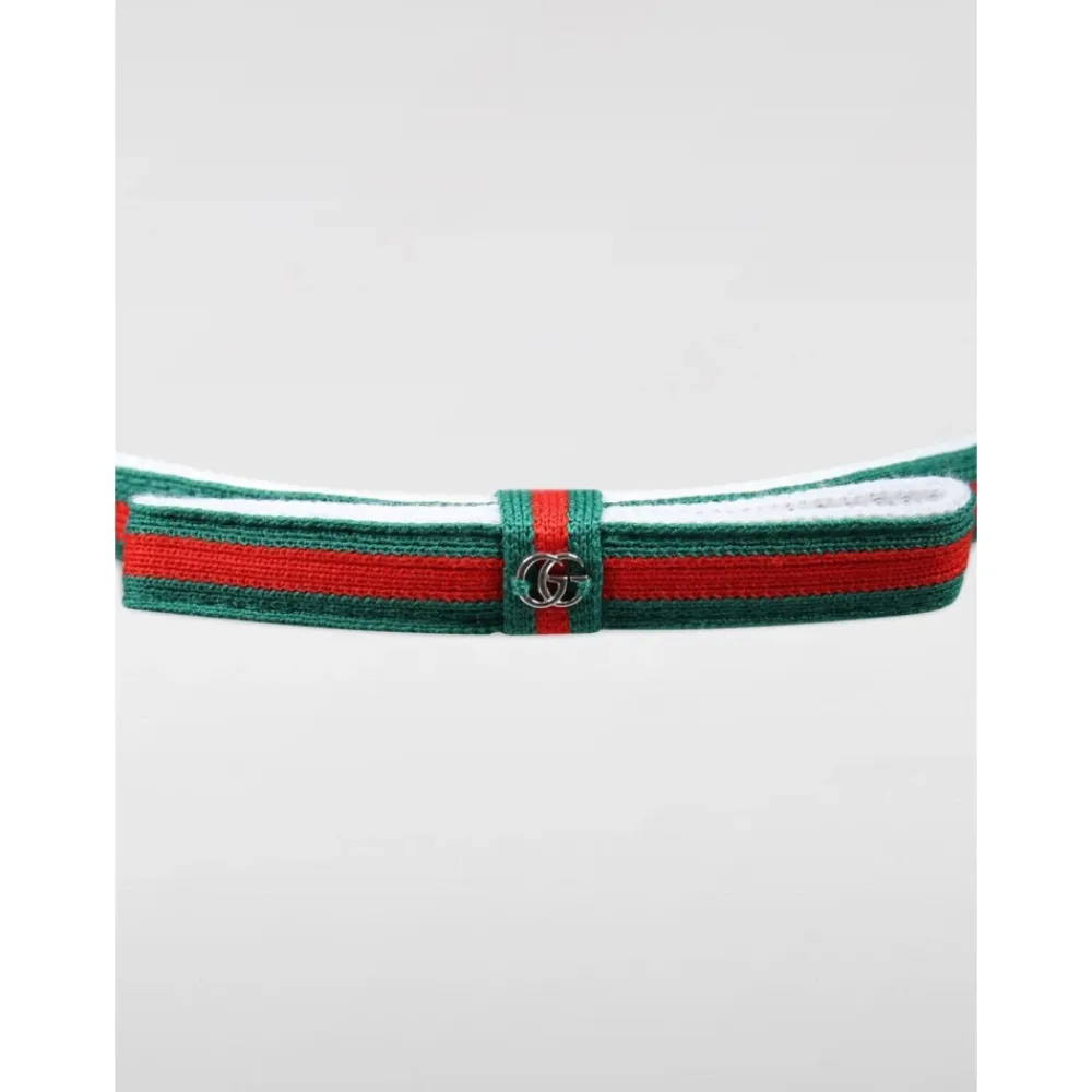 Heben Sie Ihren Look mit diesem stilvollen gestreiften Haaraccessoire von Gucci hervor. Mit einem bezaubernden Schleifendetail verleiht dieses Haarband jedem Outfit eine Note von Raffinesse und Eleganz. Perfekt, um Ihr modisches Ensemble zu vervollständigen.