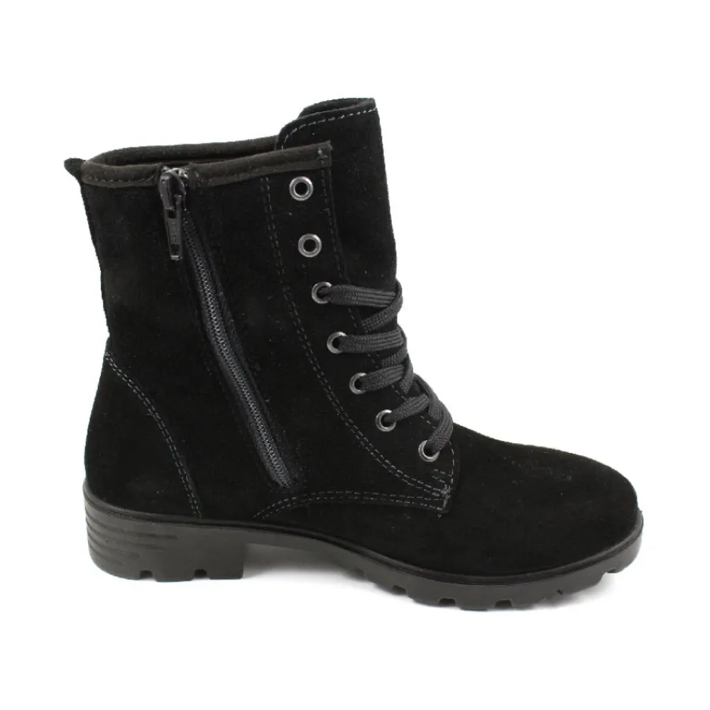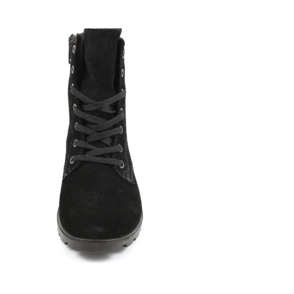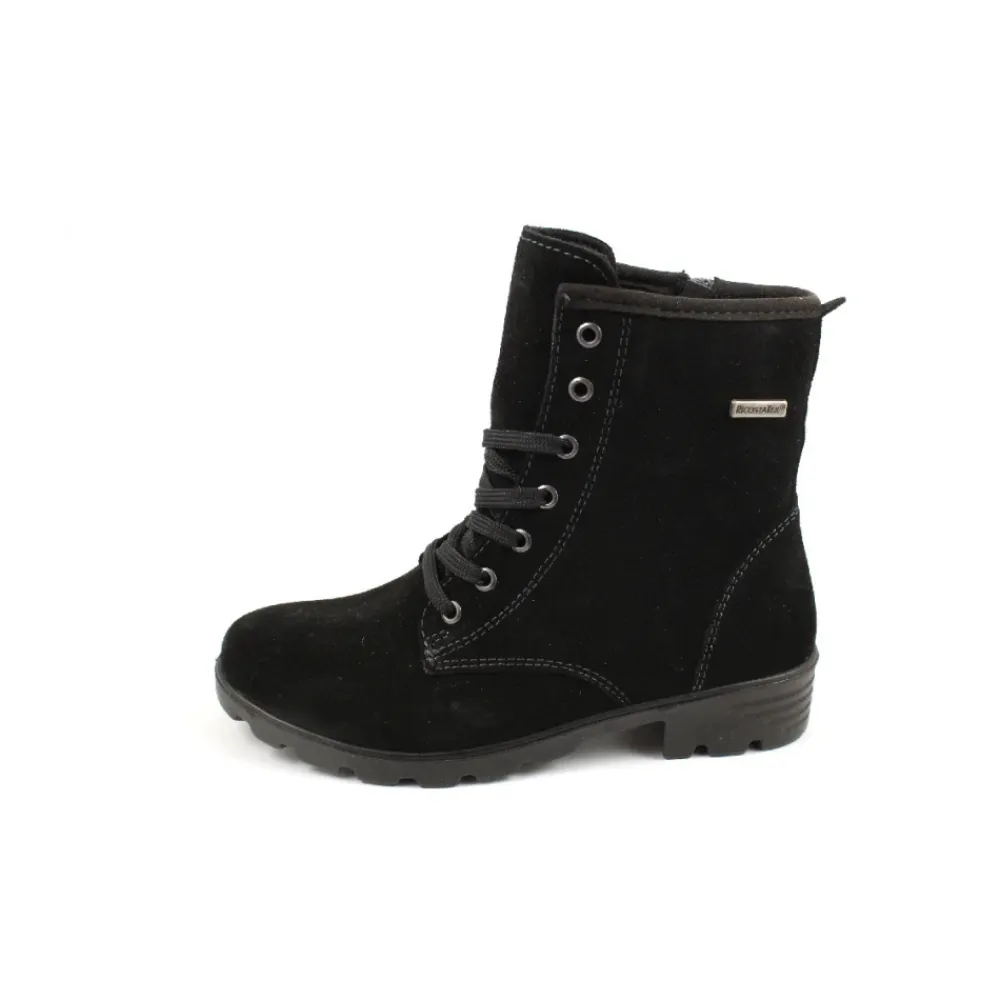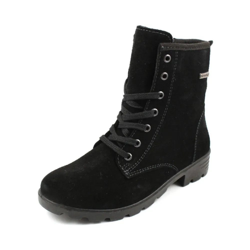 Der Ricosta Schnürstiefelette kombiniert ein Obermaterial aus Veloursleder mit einem warmen Futter aus Kunstfell für bequemen, wetterfesten Tragekomfort. Das Schnürdesign und die gepolsterte PU-Sohle bieten zuverlässigen Halt für den täglichen Gebrauch und kältere Bedingungen. Hauptmerkmale: Schwarz | Veloursleder | Wasserdicht | Gepolsterte PU-Sohle | Schnürverschluss | Herausnehmbare Innensohle (geeignet für Einlagen) | Knöchelhohe Silhouette | Runde Spitze | Futter aus Kunstfell | Wildleder-Finish | Maße & Passform: Normale Passform | Zusammensetzung & Pflege: Obermaterial: 100% Veloursleder | Futter: 100% Kunstfell | Laufsohle: 100% PU