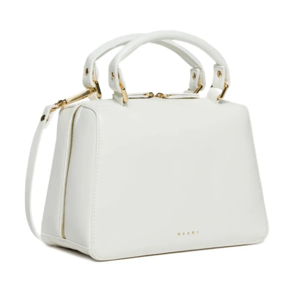 Die Marni Schultasche ist eine kompakte Tasche aus beschichtetem Gewebe, die für den täglichen Gebrauch entworfen wurde. Sie verfügt über organisierte Innentaschen und mehrere Tragemöglichkeiten für einen vielseitigen Einsatz. Hauptmerkmale: Weiß | Beschichtetes Gewebe | Verstellbarer und abnehmbarer Schultergurt | Reißverschluss | Innentaschen zur Organisation | Kann in der Hand oder über der Schulter getragen werden | Kontrastierendes Logo auf der Vorderseite | Ausgestellte Silhouette | Doppelter Griff | Abmessungen und Passform: Höhe: 15 cm | Breite: 22 cm | Tiefe: 11,5 cm | Henkelfall: 61 cm | Einheitsgröße | Zusammensetzung und Pflege: Hauptmaterial: 100% Polyester | Beschichtung: 100% Polyurethan | Futter: 75% Polyamid, 25% Elasthan | Nicht waschen; Nicht bleichen; Nicht bügeln; Nicht chemisch reinigen; Nicht im Trockner trocknen.