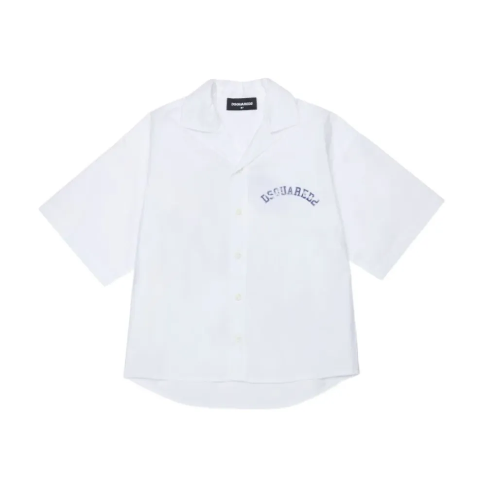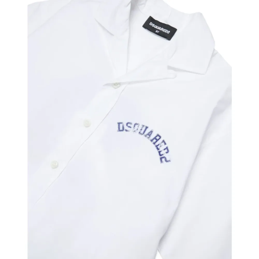 Dsquared2 Shirt mit gesticktem Logo auf der Vorderseite und einem Grafikdruck auf der Rückseite. Der vordere Knopfverschluss sorgt für einfaches An- und Ausziehen. Hauptmerkmale: Weiß | Knopfverschluss vorne | Gesticktes Logo vorne | Grafikdruck auf der Rückseite