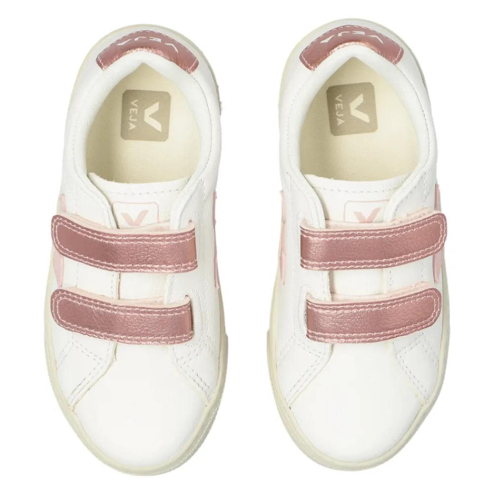 Veja Small Esplar Leder-Sneakers zeichnen sich durch ein sauberes, weißes Leder-Obermaterial mit dezenten rosa Akzenten und einen doppelten Klettverschluss für schnelles, sicheres Tragen aus. Die Gummi-Außensohle bietet zuverlässigen Halt für den täglichen Gebrauch. Hauptmerkmale: Extra Weiß | Leder | Gummisohle für zuverlässigen Halt | Zwei Klettverschlüsse für einfaches Anziehen | Sichere Gummi-Außensohle | V-förmiges Logo an der Seite | Dezente rosa Akzentdetails | Abmessungen & Passform: Sohlenhöhe: 2 cm | Materialzusammensetzung & Pflege: Leder | Polyesterfutter | E.V.A.-Innensohle | Gummi-Außensohle